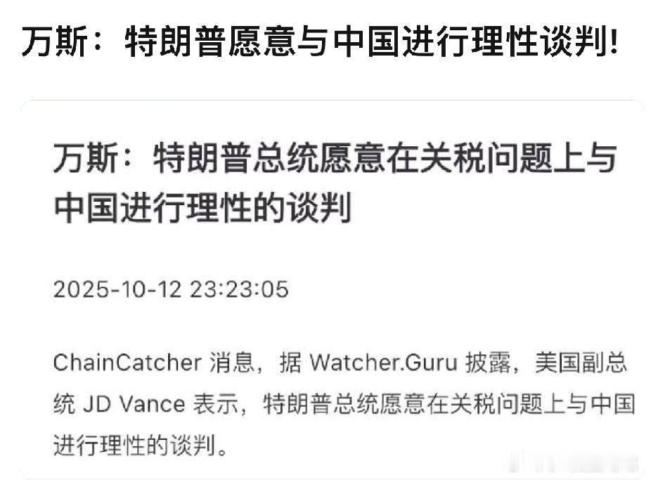 万斯:特朗普愿意与中国进行理性谈判! 打牌,虚空造牌局,敬请期待! 实话说这种随便推翻自己承诺的国家真没法谈出结果,转头就不认了,只能说他要态度去应付选民先给他扇脸让他老实点得了,省的还有蠢蠢欲动满世界乱来的心。