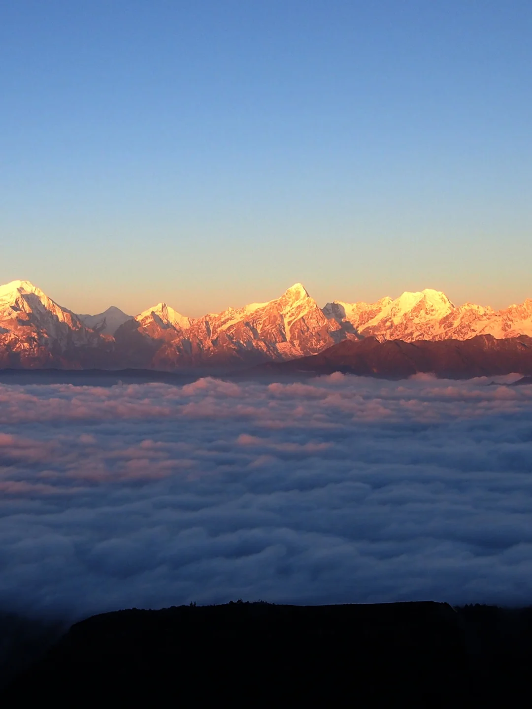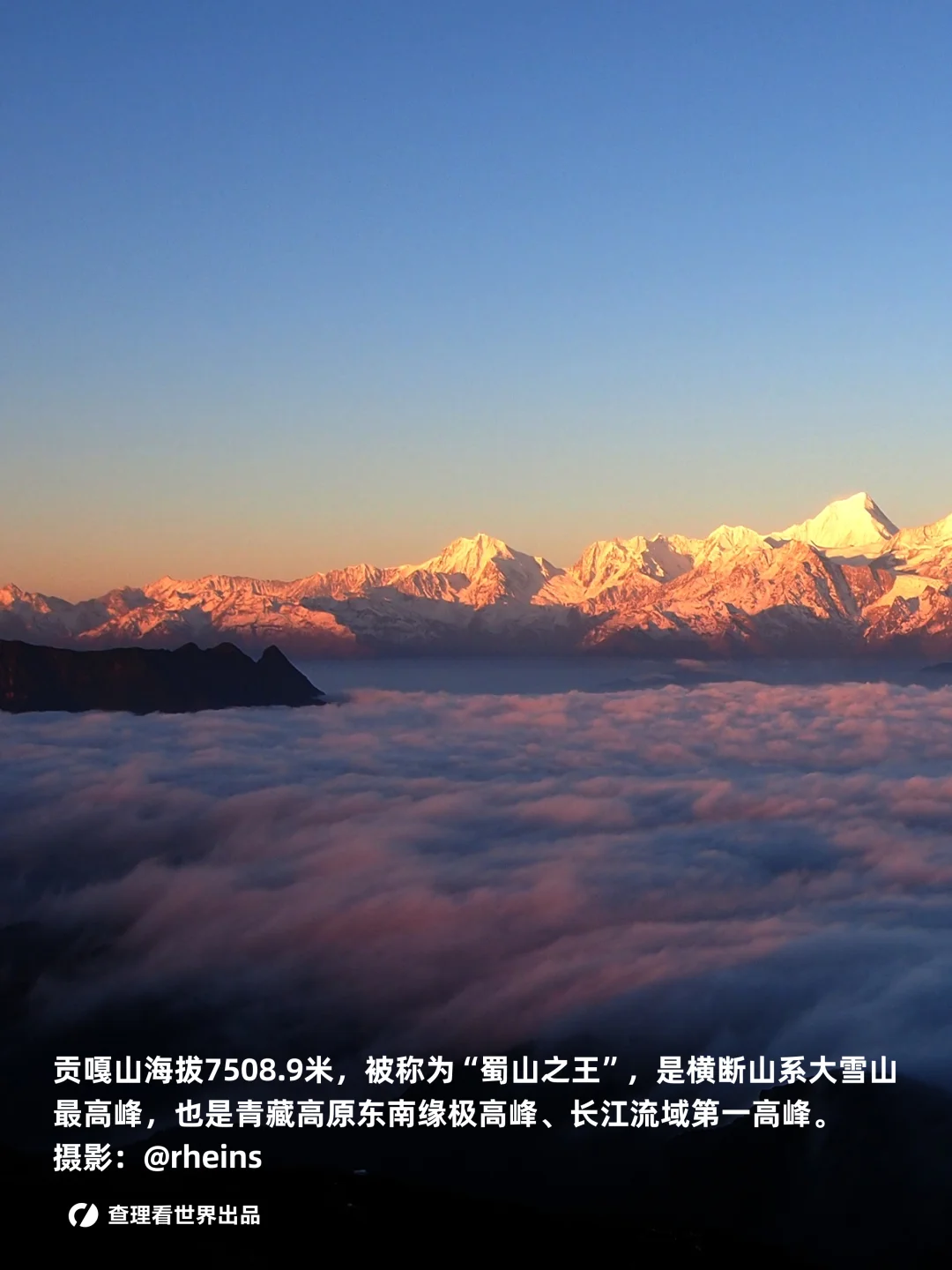 贡嘎峰,位于中国四川省甘孜藏族自治州,是大雪山主峰,海拔 7556 米,为四川省最高峰,素有 “蜀山之王” 的美誉,也是横断山脉的最高峰。
