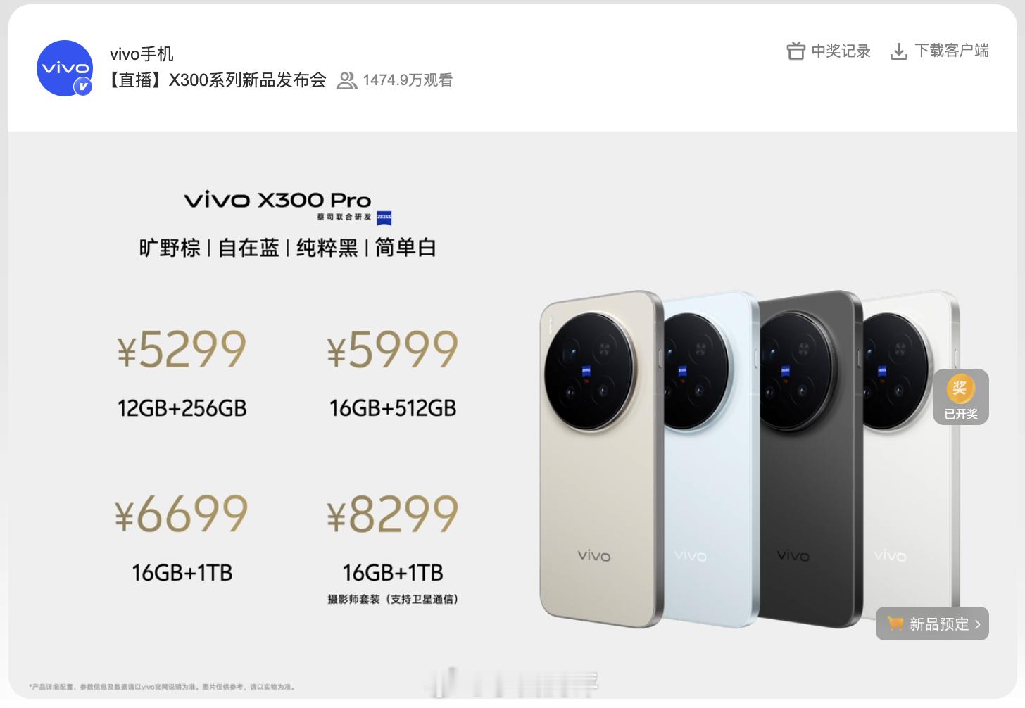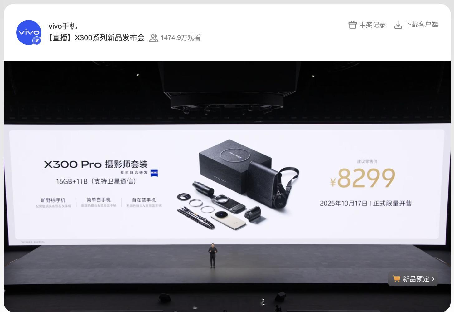 【vivo X300 Pro】12+256GB版5299元,16+512GB版5999元,16GB+1TB版6699元,摄影师套装卫星通信版16GB+1TB是8299元。