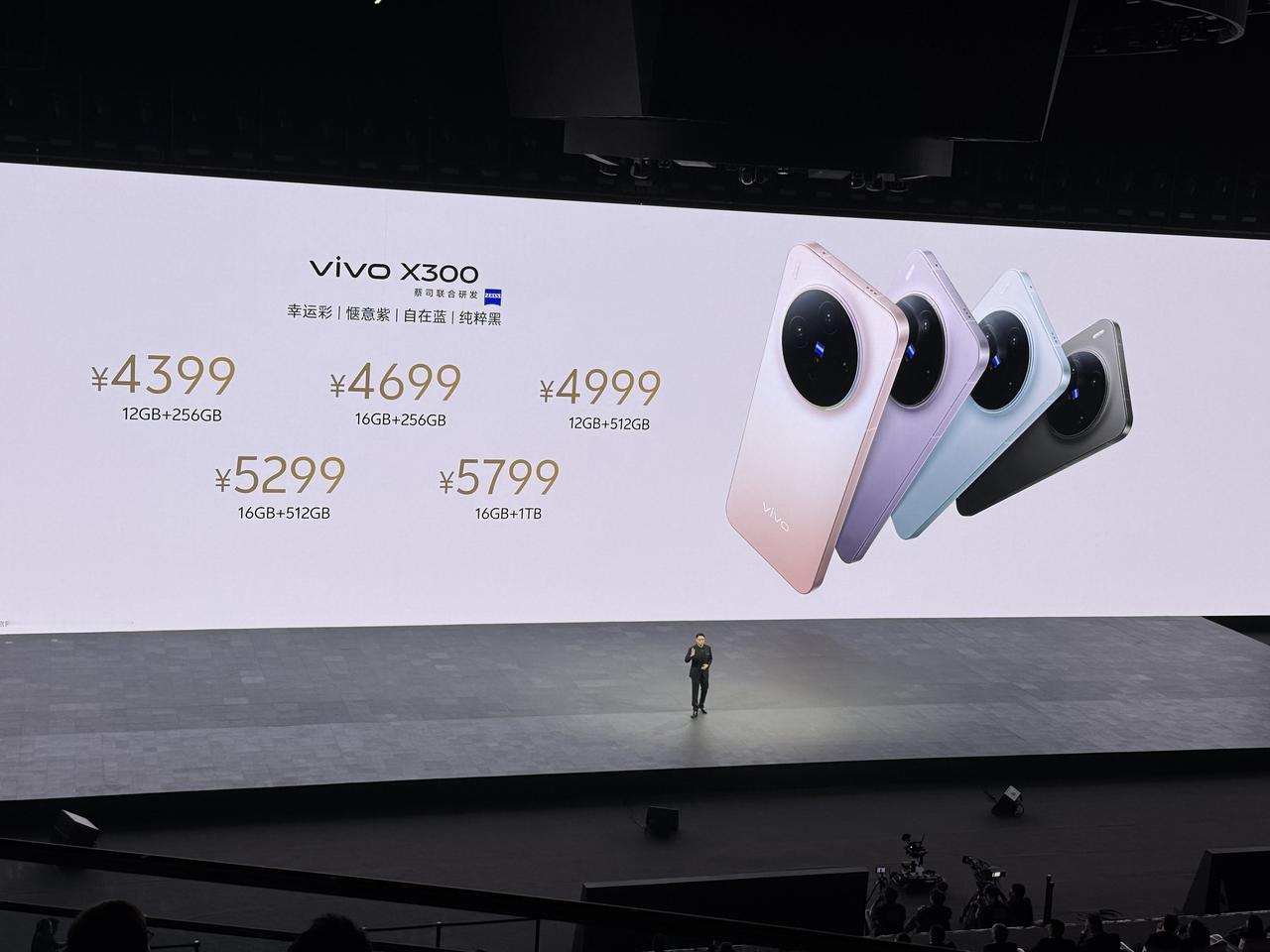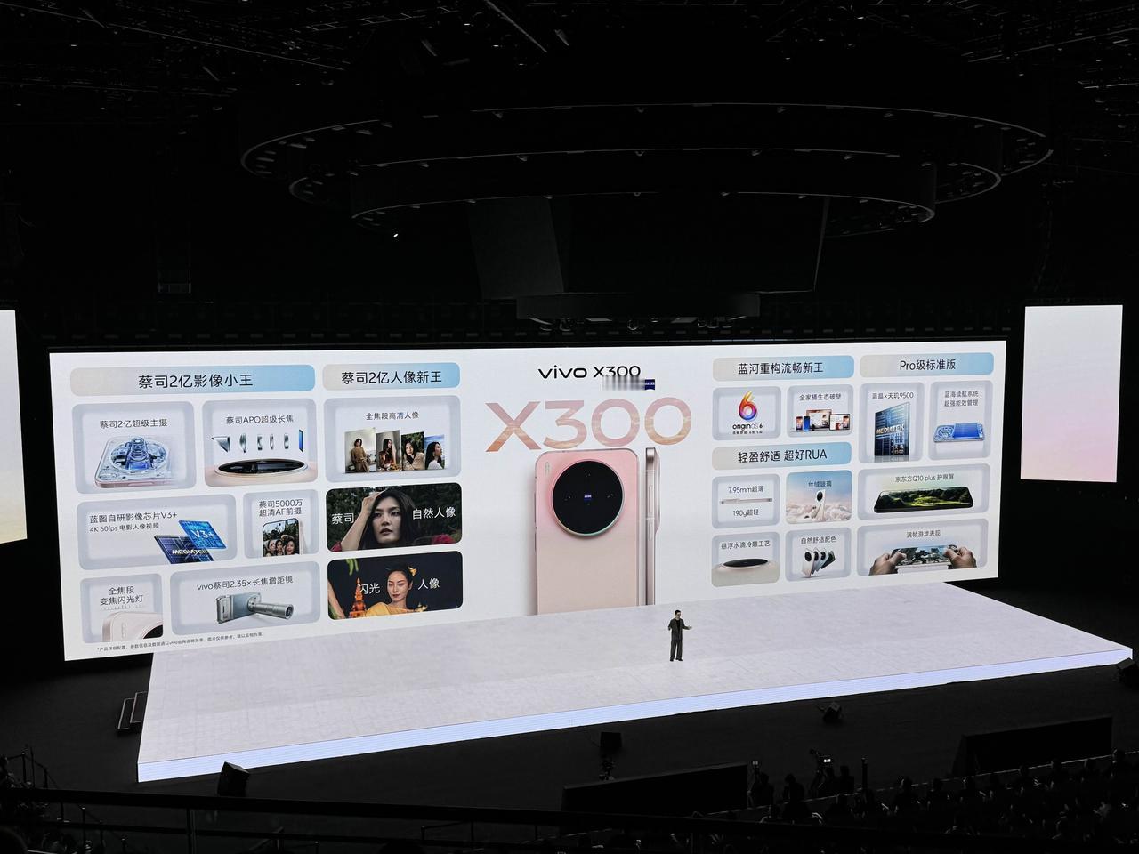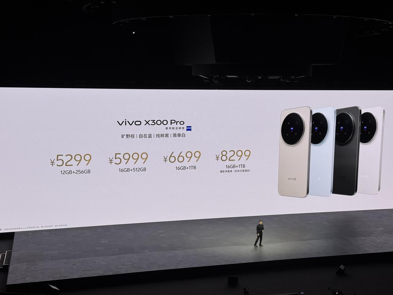 10月13日晚,vivo正式发布X系列两款新品,包括既Pro又mini的vivo X300,以及“影像大王”vivo X300 Pro,由蒋奇明出任旅拍摄影师。全球首发搭载联发科天玑9500芯片,并带来三颗定制影像传感器。 值得一提的是,vivo X300系列发布会的视频直播是采用vivo X300 Pro呈现的,现场使用10台vivo X300 Pro进行全程录制和直播。 vivo X300: 6.31英寸小屏,7.95毫米190克轻薄手感 2亿像素主摄,行业Ultra级的CIPA 4.5防抖 索尼LYT-602超级长焦,支持蔡司增距镜 5000万像素全焦段高清人像,全焦段闪光灯 京东方定制护眼屏,全频PWM、全局DC调光 USB 3.2,超声波指纹识别,6040mAh电池 12GB+256GB:4399元 16GB+256GB:4699元 12GB+512GB:4999元 16GB+512GB:5299元 16GB+1TB:5799元 vivo X300 Pro: 7.99毫米,悬浮水滴冷雕玻璃,6.78英寸直屏 2亿像素三星HPB长焦,超强CIPA 5.5防抖 赛事级长焦追焦能力,485mm超强运动抓拍 索尼LYT-828云台级主摄,蓝图影像双芯 6510mAh电池,双UFS 4.1双磁盘阵列 全场景信号增强,IP68+IP69防尘防水 12GB+256GB:5299元 16GB+512GB:5999元 16GB+1TB:6699元 16GB+1TB摄影师套装(支持卫星通信):8299元