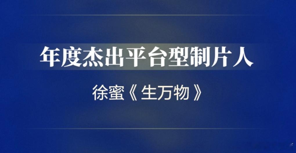 制片人徐蜜凭借《生万物》获年度杰出平台型制片人