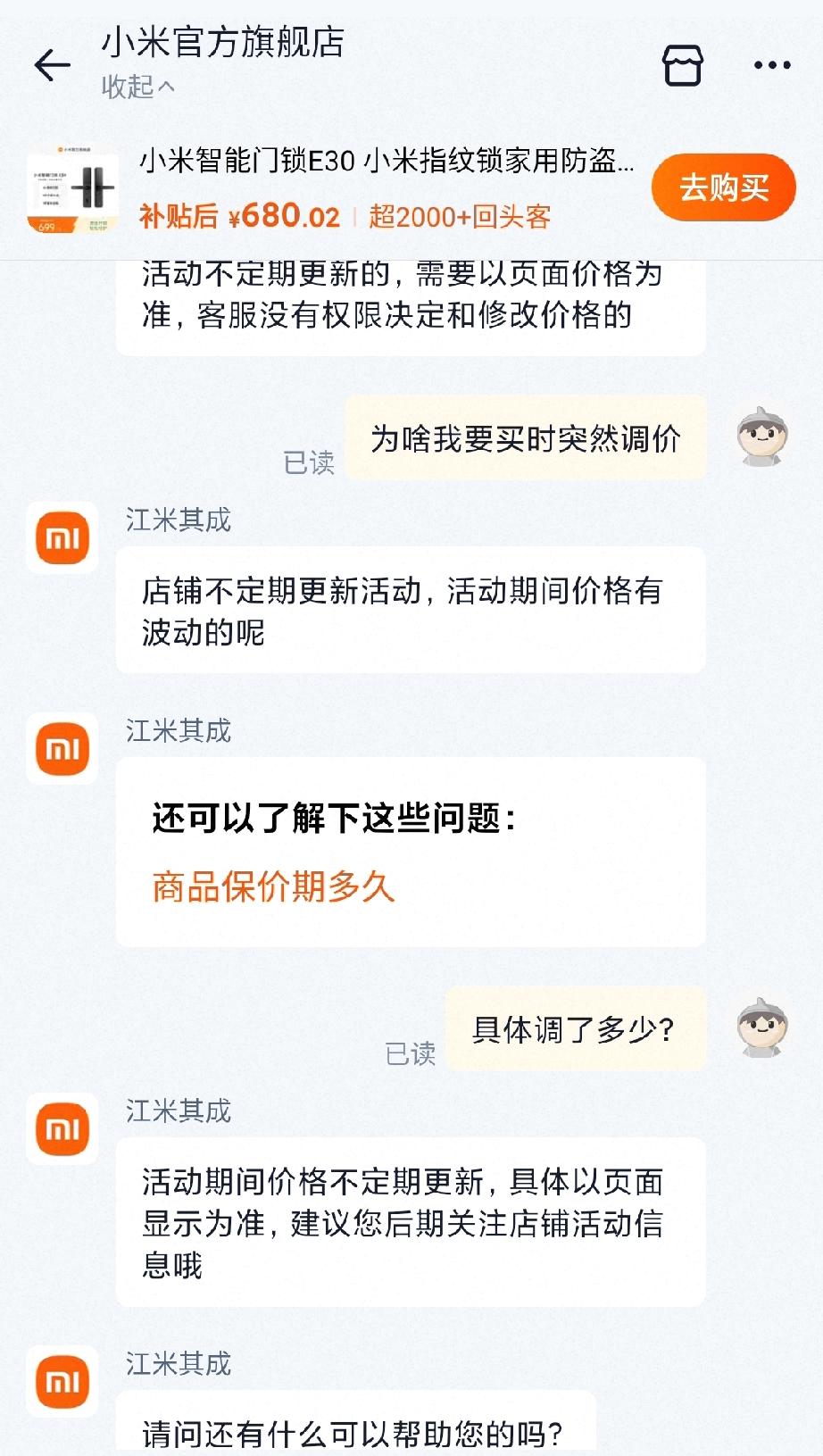 “双十一惊天骗局”!看下双十一各平台是怎么调价,怎么糊弄消费者的,怒火中烧! 以小米入门电子锁为例,这两天家里要换门锁,昨天看价格590元,今天要买时变680元,一查9月28号最低价481元,国庆节前涨价,双十一再涨一波,任意调价,愚弄消费者,老百姓的钱都是大风刮来的啊!去问客服回答还无比专业,无可挑剔!双十一“双十一”为什么越来越冷清