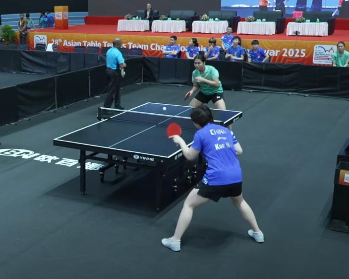 胖乎乎、笑眯眯的大丫头来了,带着福气来了!哈哈 太喜欢蒯曼了! 大丫头太爱出汗了 还没开始打, 这后背就湿了, 你想想多么热吧。 大丫头不愧年轻人, 打球就是带劲, 第一局11:6拿下 这状态, 基本锁定3:0拿下。