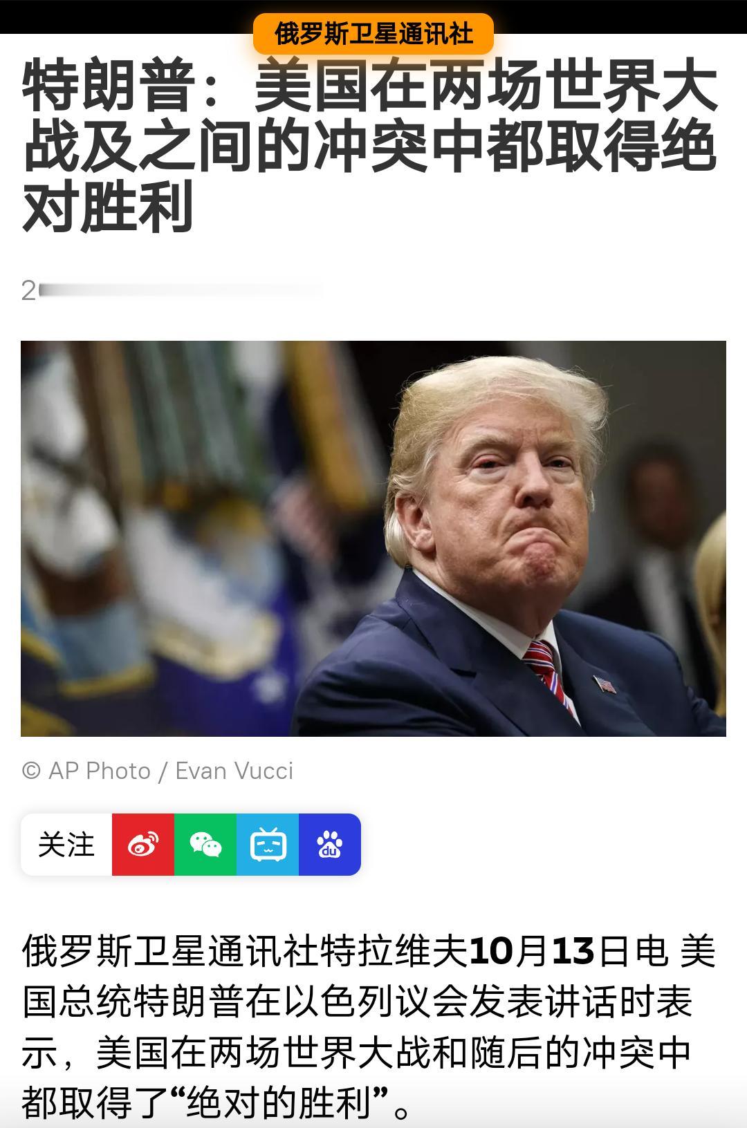 白宫主人有点飘了! 在美国佬的参与下,哈马斯在昨天终于释放了剩下的人质和人质遗体,中东和平迎来了一线曙光。 正在以色列访问的白宫主人禁不住有点飘了!他在以色列国会发表演讲时说,美国在两次世界大战和随后的冲突中都取得了“绝对的胜利”。 白宫主人大概是忘了美国佬介入的越战和阿富汗的“反恐”,如果这两场旷日持久的战争对美国佬也算胜利,世上就没有失败的战争了。这也难怪,他老人家毕竟已过古稀之年,有点健忘也正常。 中东问题的核心是耶路撒冷的归属巴勒斯坦人应有的权利保障。摆平哈马斯这才哪到哪,后面的路仍然很长很艰难,白宫主人不要飘得太早了!