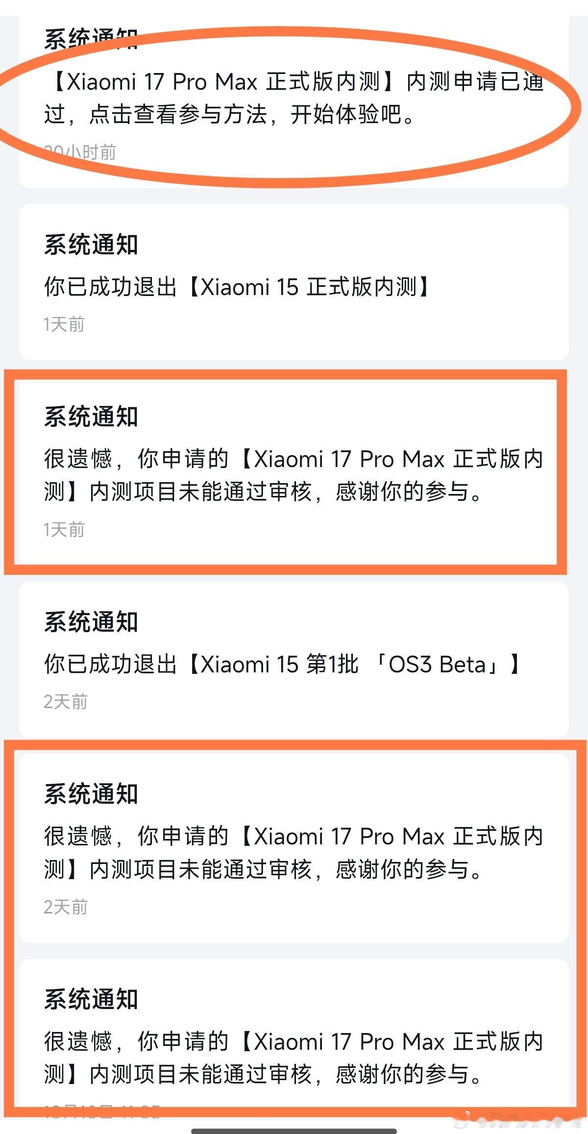 昨天忘记开消息通知了,今早去小米社区签到的时候突然发现昨天第四次申请的17pm内测过了!!莫非是因为我把小15的内测和beta都退了。[笑而不语][笑而不语][good]