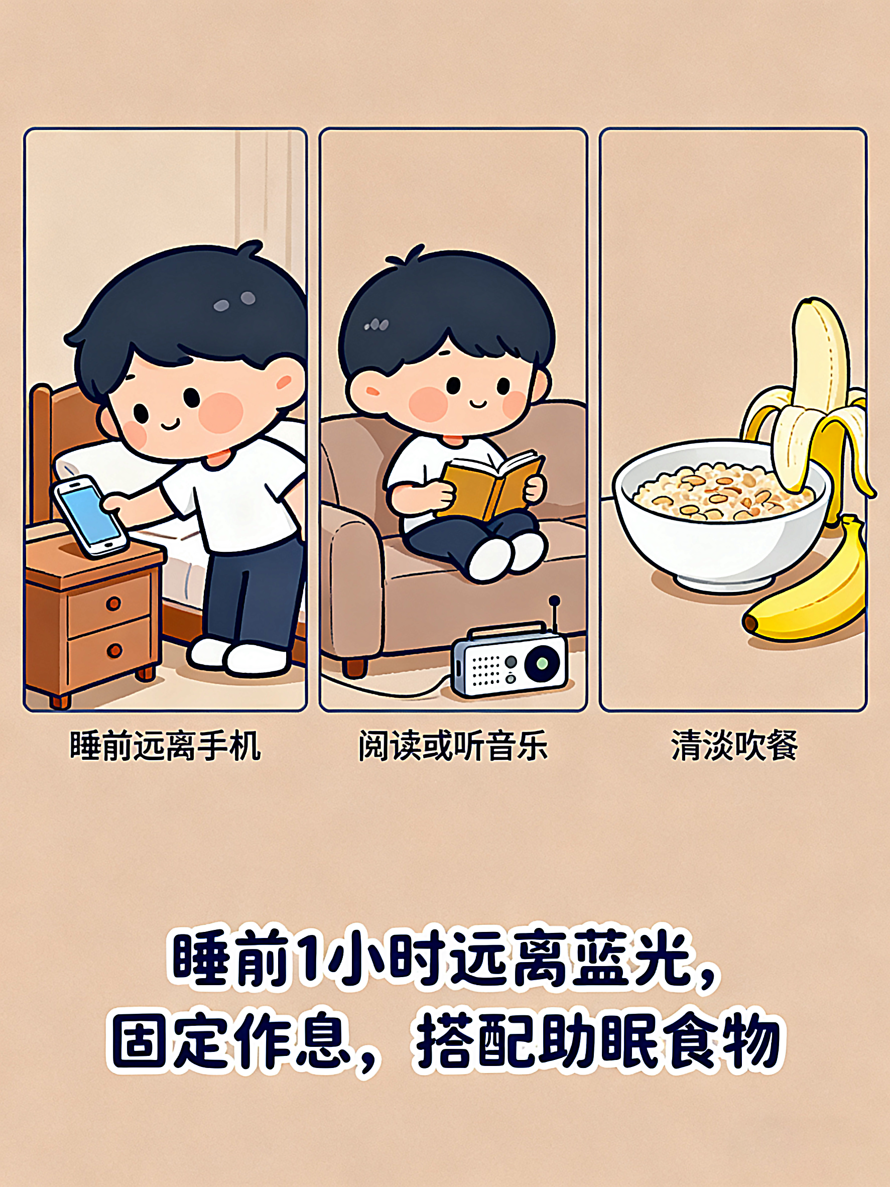 其次,逐步调整习惯:比如睡前1小时远离手机蓝光(它会抑制褪黑素分泌),改成阅读或听轻音乐;晚餐别吃太饱,避免咖啡因;设定固定作息,哪怕每天提前15分钟,也能慢慢适应。在我的营养师工作中,常建议客户搭配清淡晚餐(如燕麦粥),富含镁的食物(如香蕉)能助眠。记住,睡眠质量比时长更重要——深度睡眠能降低压力激素,保护血管弹性。
