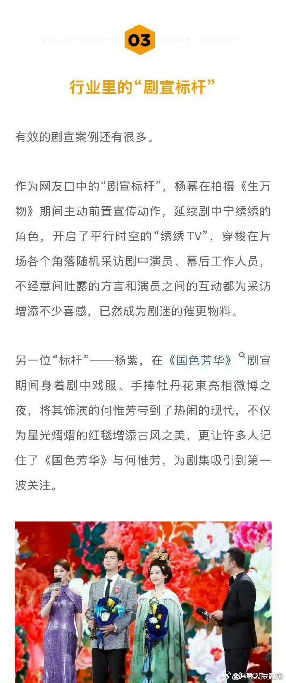 杨紫、杨幂被评为行业内的“剧宣标杆”,《生万物》《国色芳华》《长相思》都是有效剧宣!!