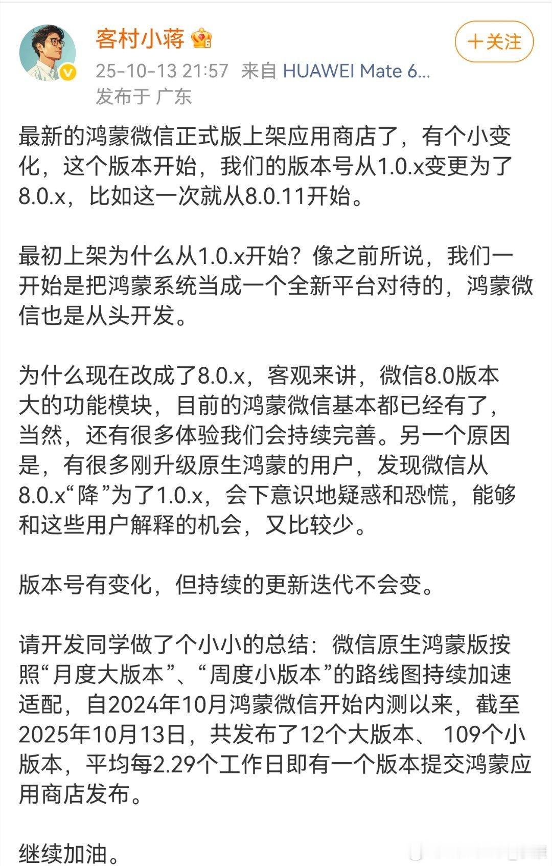 鸿蒙微信app改版本号了,从之前1.0.x改为现在8.0.x,和现在安卓微信版本号一样了。