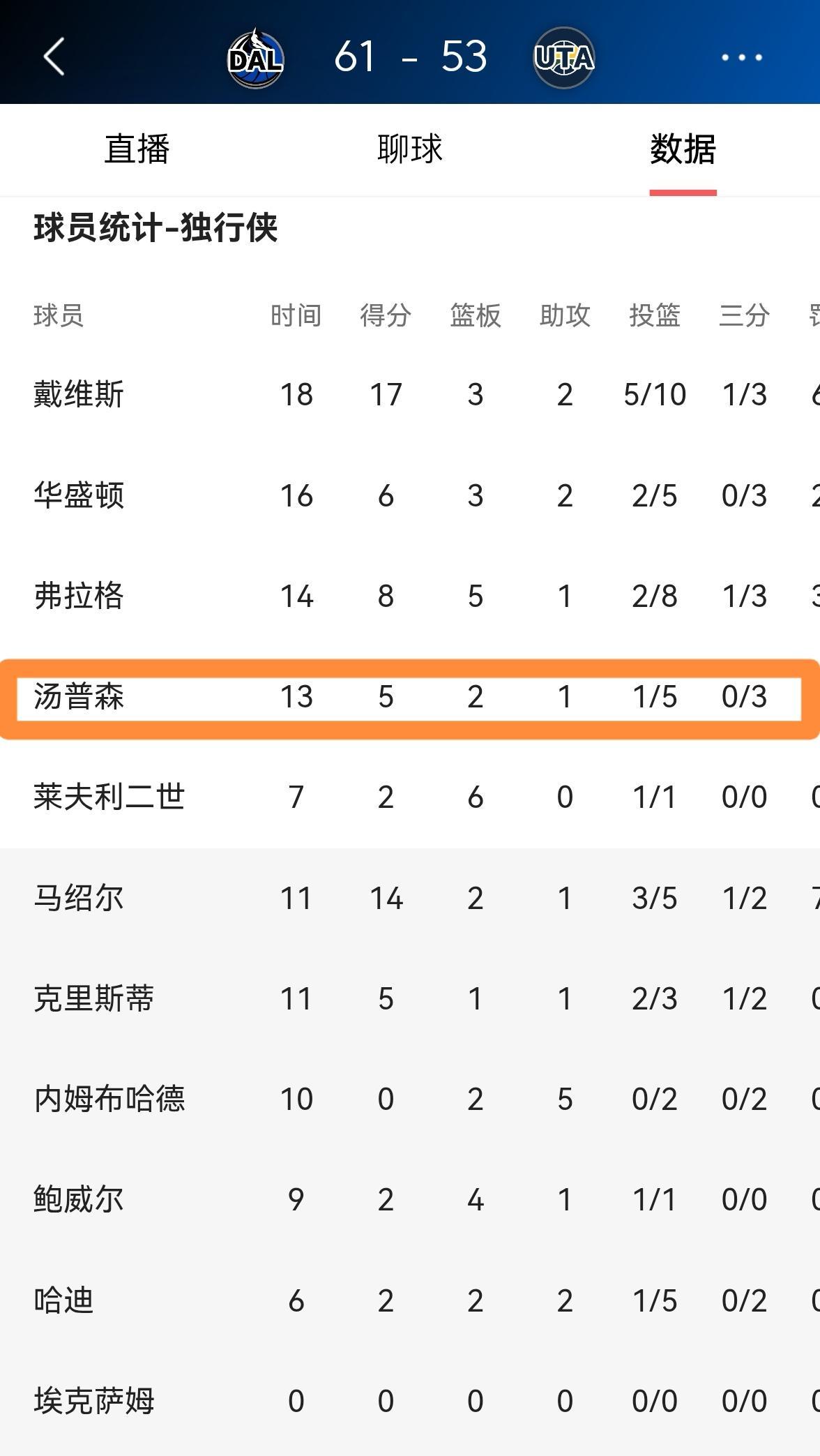 独行侠老将克莱-汤普森应该就地退役!在今天进行的独行侠和爵士的季前赛中,汤普森在上半场比赛中的表现简直就是一场大灾难。 在前两节比赛中,汤普森首发出战13分钟,投篮5中1,其中三分球3中0、罚球5中3非常低效的得到5分,他的场上正负值为首发阵容里最低的-3。 毫不夸张的说,如今的汤普森不仅不适合打首发,而且不适合继续征战NBA,他应该立刻退役。