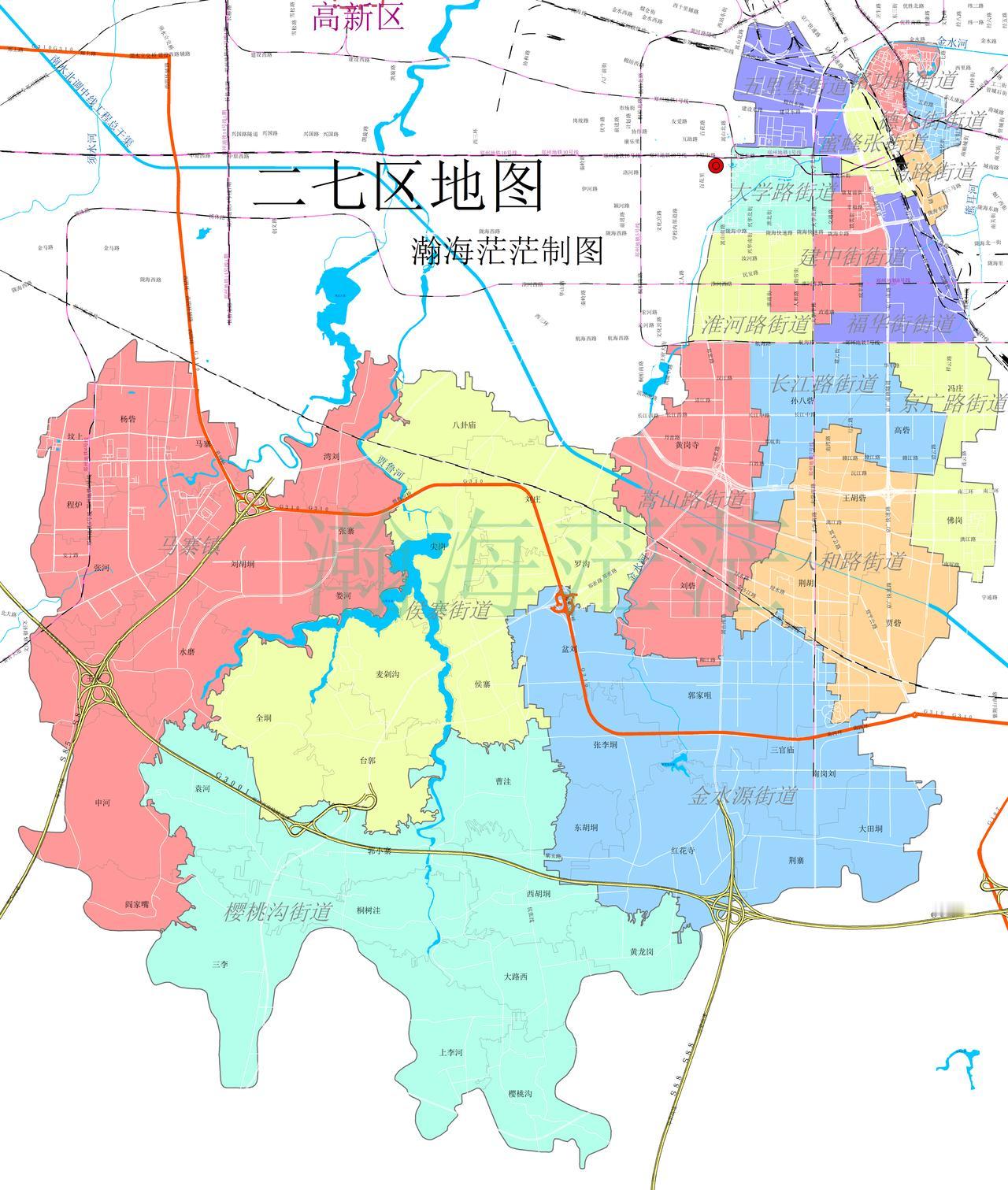 郑州市二七区简图 中原区之后,瀚海茫茫简单制作了郑州市二七区简图,里面有乡镇街道边界、村庄边界、公路、铁路、地铁、高速、国道。资料全部来自网络,仅供参考。