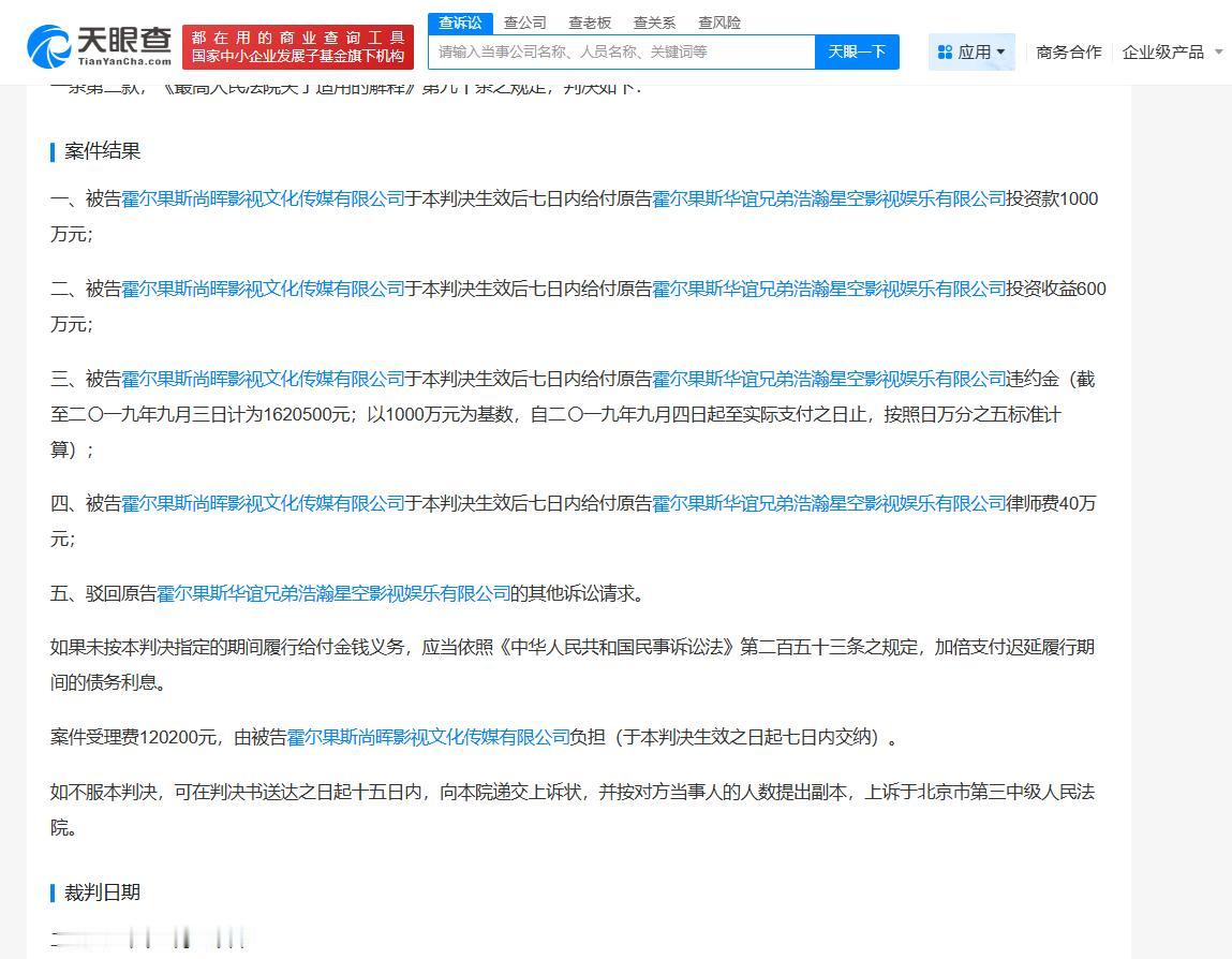 天眼查天眼风险信息显示,近日,浙江东阳尚晖影视文化传媒有限公司、霍尔果斯尚晖影视