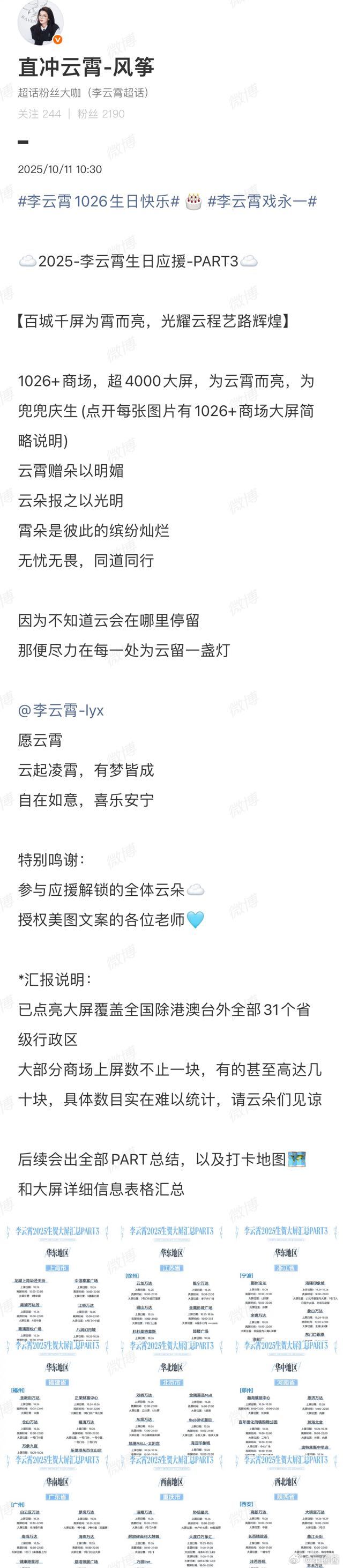 距离李云霄生日还有十多天,李云霄粉丝就做了这么多应援,不仅有李云霄痛铁和全国11