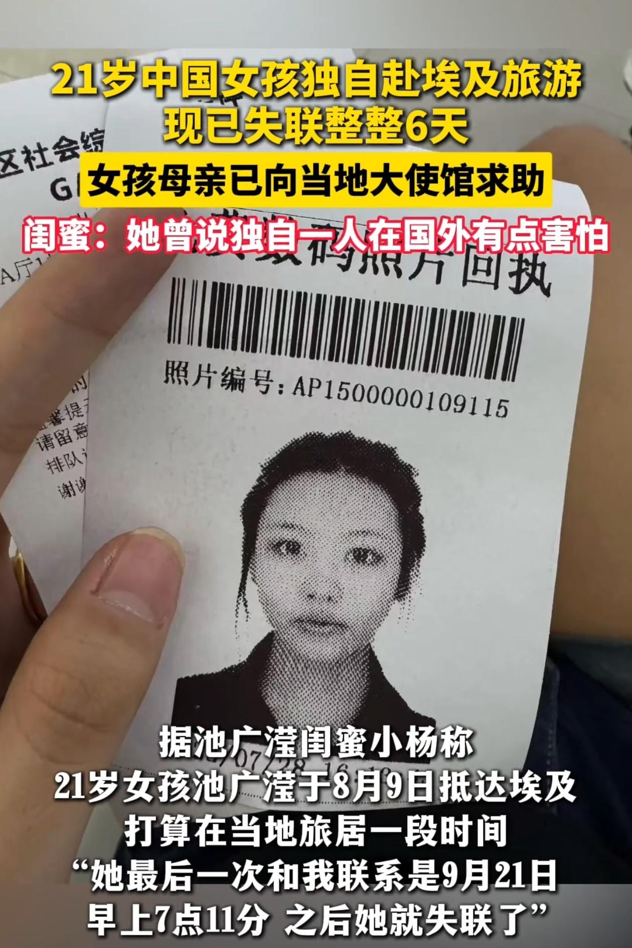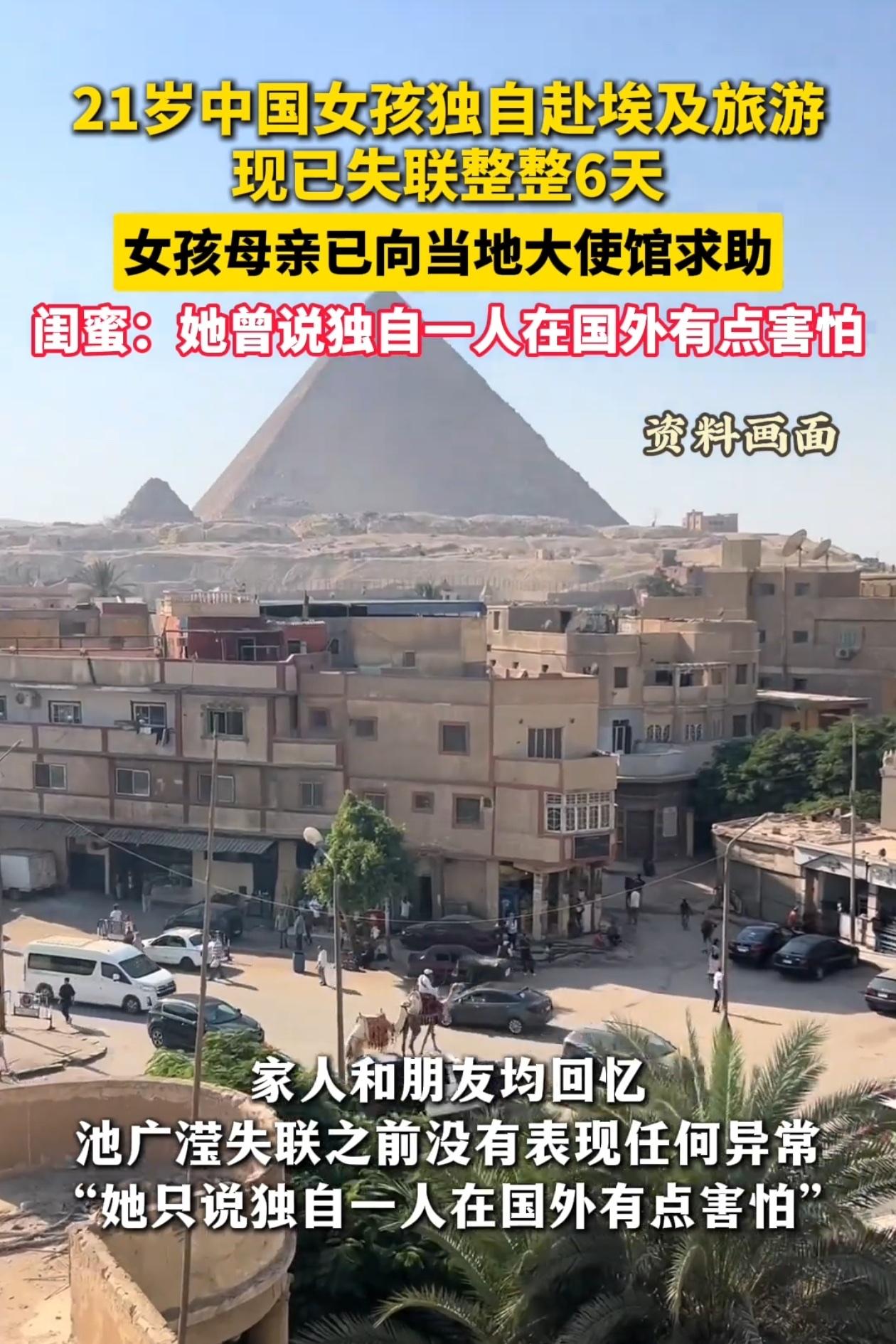"担心的事还是发生了!"21岁中国女孩独自去埃及旅游,母亲最怕的噩梦终于变成现实,电话那头再也没有女儿报平安的声音。 池妈妈握着手机的手在颤抖,屏幕上显示的最后一条消息停留在9月21号晚上8点,女儿发来一张金字塔夕阳照,配文"妈,这里好美",之后就像石沉大海,微信不回,电话不接,这可把当妈的急坏了。 女儿刚从大学毕业三个月,说要趁年轻看看世界,还信誓旦旦保证每天视频报平安,临行前还在胸口纹了朵莲花,说是保平安的,池妈妈当时摸着女儿瘦瘦的肩膀,95斤的身板在埃及那么远的地方,心里就不踏实。 一天,两天,三天过去了,池妈妈从担心变成恐慌,托朋友找遍了开罗的酒店,打了不下50个越洋电话,闺蜜小杨翻出聊天记录,女儿9月20号还说"一个人走在异国街头有点害怕,但也很刺激",第二天人就没了音信,池妈妈急得三天没合眼,嘴唇都起了泡。 实在没办法,池妈妈哭着拨通了中国驻埃及大使馆的电话,"求求你们,帮我找找女儿,她才21岁,165的个子,左臂有个蝴蝶纹身",电话里母亲的哭腔让工作人员都红了眼,大使馆立即启动紧急寻人机制,当地华人商会也发动所有力量,贴寻人启事,挨个酒店排查。 第六天下午,奇迹出现了,大使馆传来消息,人找到了,原来池广滢因为不懂当地规定,在禁拍区域拍照被警方带走调查,手机被没收,语言不通又解释不清,这才失联了整整六天,听到这个消息,池妈妈腿一软,瘫坐在地上,眼泪像决堤的洪水。 网友们纷纷留言:"独自旅行需要勇气,但更需要准备,年轻不是冒险的资本",还有人说:"看着都揪心,幸好人没事,这趟埃及之行估计终身难忘了"。 当地华人透露,每年都有好几起类似事件,年轻人独自出国,不了解当地法规,一不小心就会惹上麻烦,埃及很多景点都有特殊规定,拍照要申请,着装有要求,这些细节往往被忽略。 其实池广滢的经历给所有人敲了警钟,世界很大值得去看,但安全永远是第一位的,出发前做好功课,了解当地文化法规,把行程告诉家人,遇事第一时间联系使领馆,这不是胆小,而是对自己负责。 俗话说"儿行千里母担忧",每一个在外闯荡的年轻人背后,都有一双望眼欲穿的父母,你以为的诗和远方,可能是他们的提心吊胆,勇敢追梦没错,但别让冒险变成冒失。 这或许就是成长的代价吧,用一次有惊无险的经历,换来对生命的敬畏和对规则的尊重。