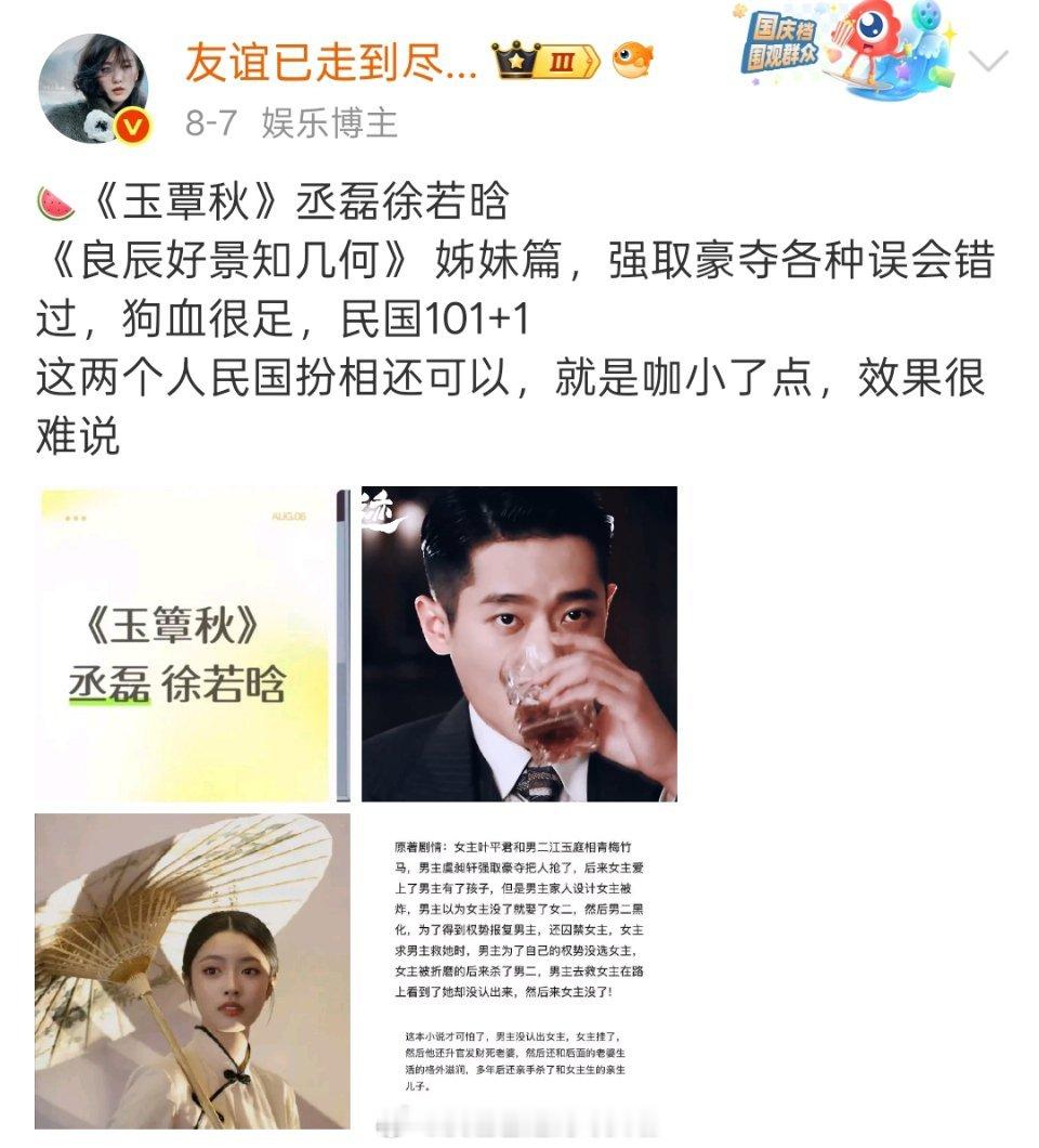 🍉《玉覃秋》丞磊徐若晗,18号围读剧本,月底开机
