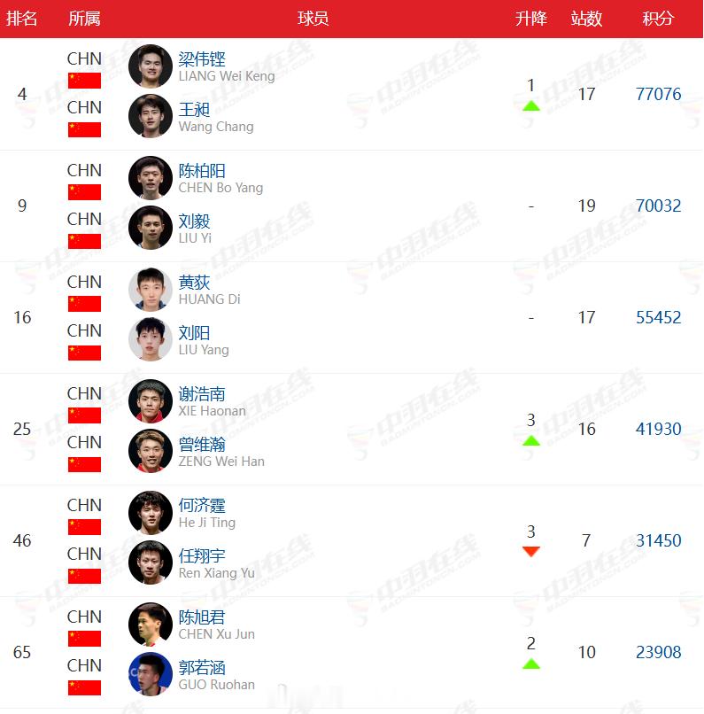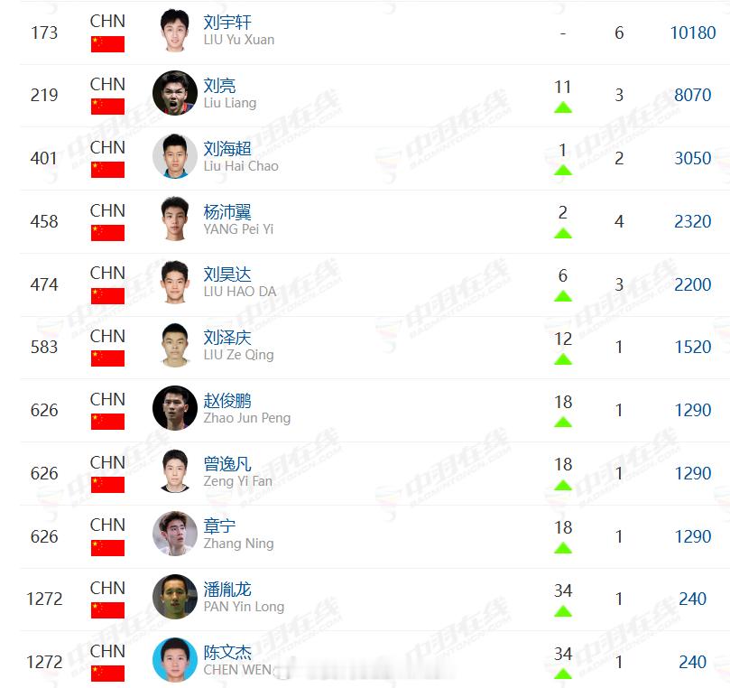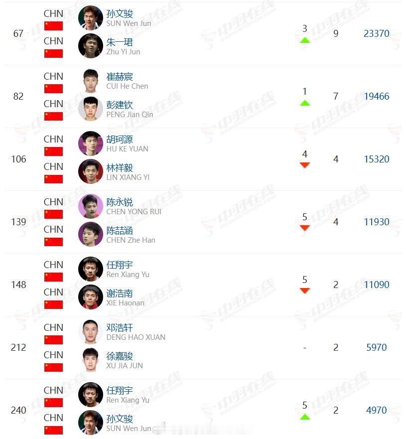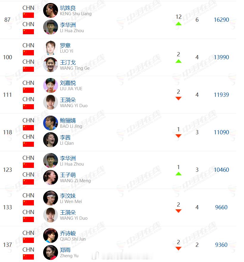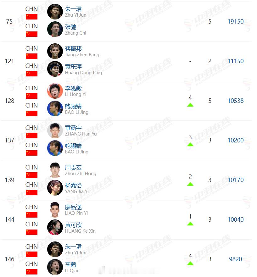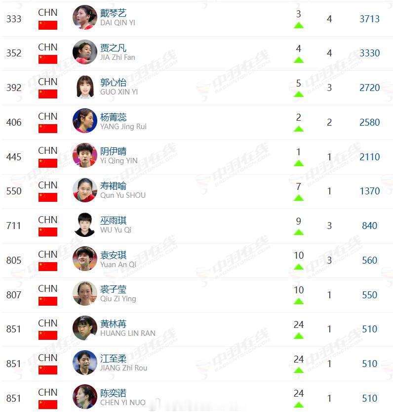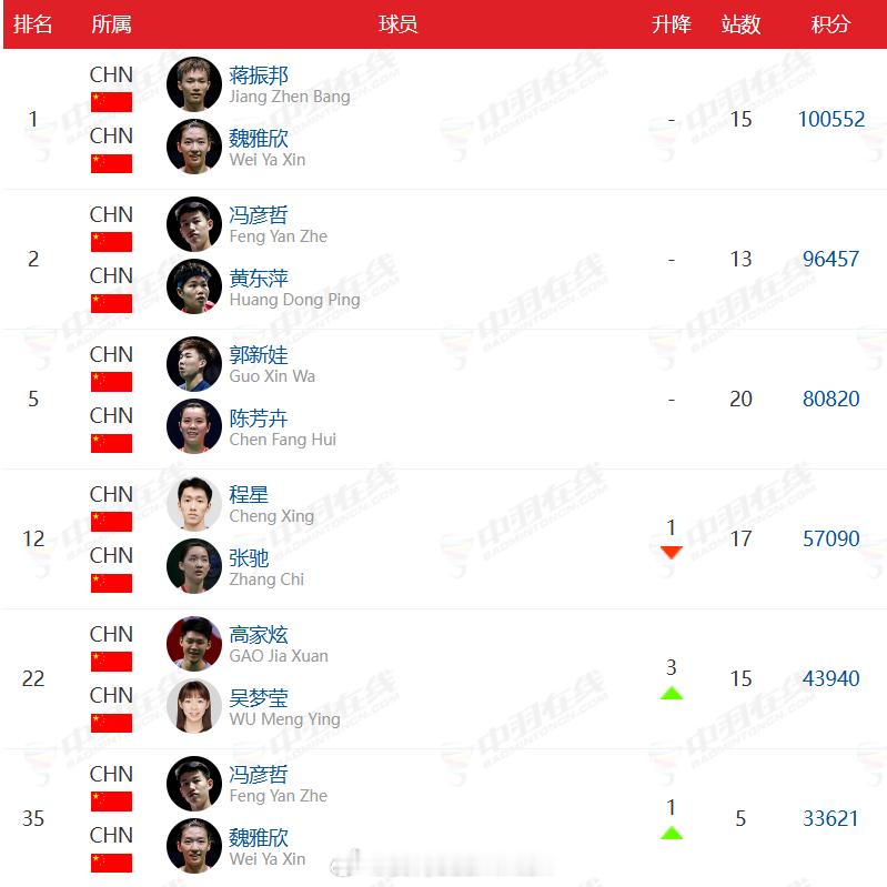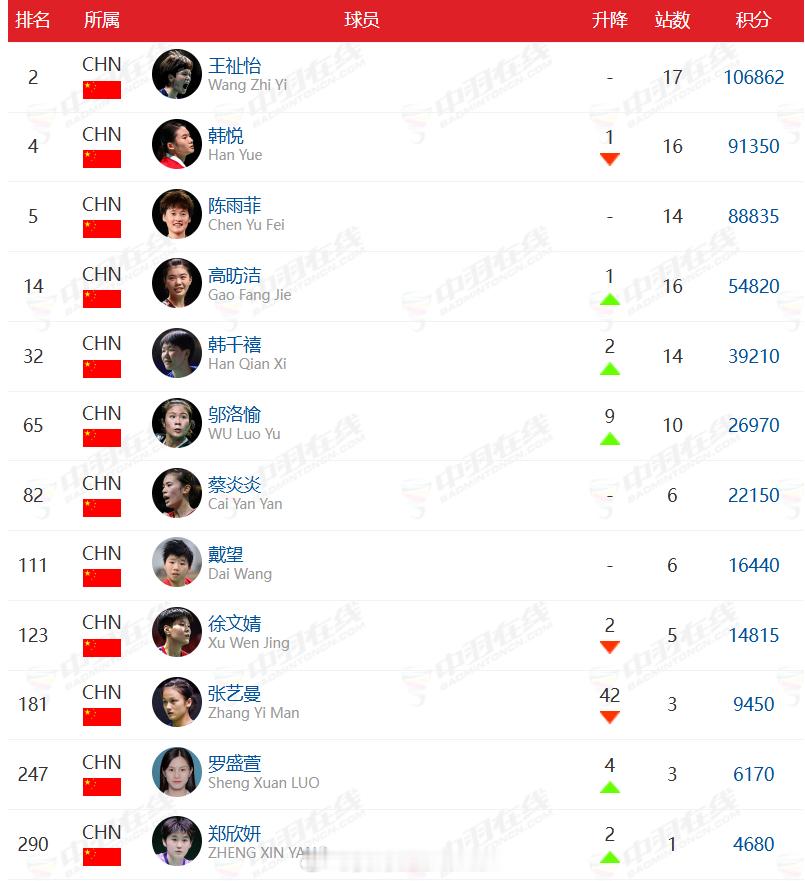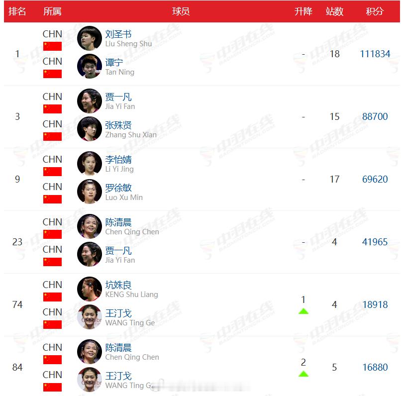 最新🇨🇳中国羽毛球队🏸完整世界排名汇总如下