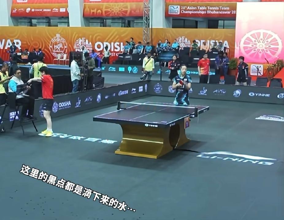 印度亚锦赛场地条件引关注,孙颖莎克服困境3:1拿下女团半决赛首胜 在印度举办的乒乓球亚锦赛女子团体半决赛中,中国队对阵韩国队的首场比赛就状况频出。孙颖莎对阵韩国选手申裕斌时,赛场地面竟出现滴水情况,黑色的水滴在赛场上格外显眼,如此简陋的场地条件让人不禁感慨“太业余”。 但孙颖莎丝毫不受影响,凭借超强的心理素质和精湛球技,以3:1成功拿下首场胜利,为中国队取得开门红。紧接着王曼昱将迎战金娜英,期待国乒姑娘们继续稳定发挥,也希望赛事方能够重视场地问题,为运动员们提供更专业的竞技环境!孙颖莎