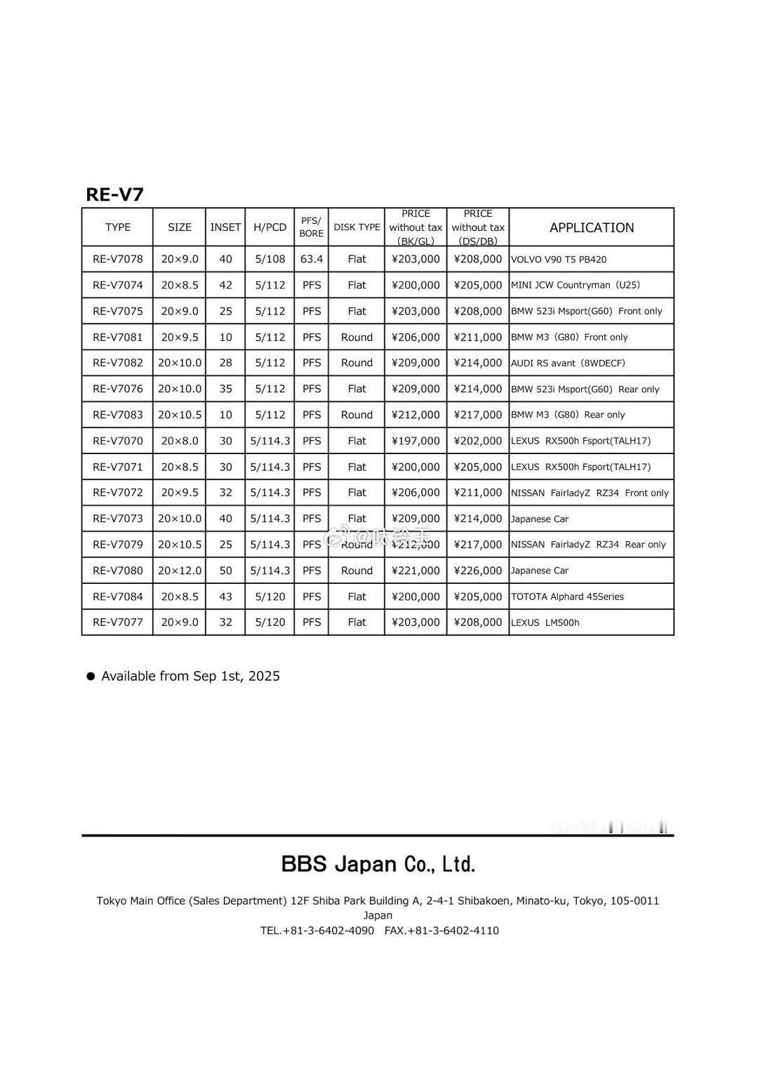 日本BBS RE-V7 新增20寸数据欢迎带数据和车型下定