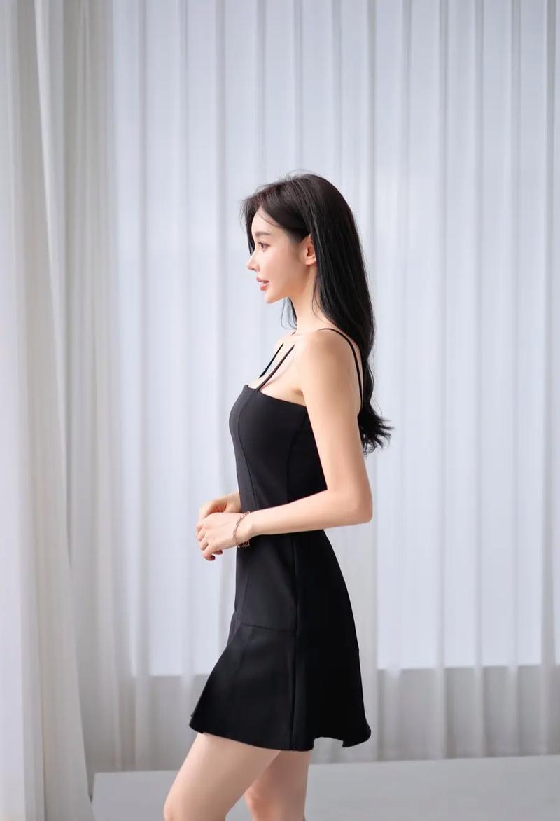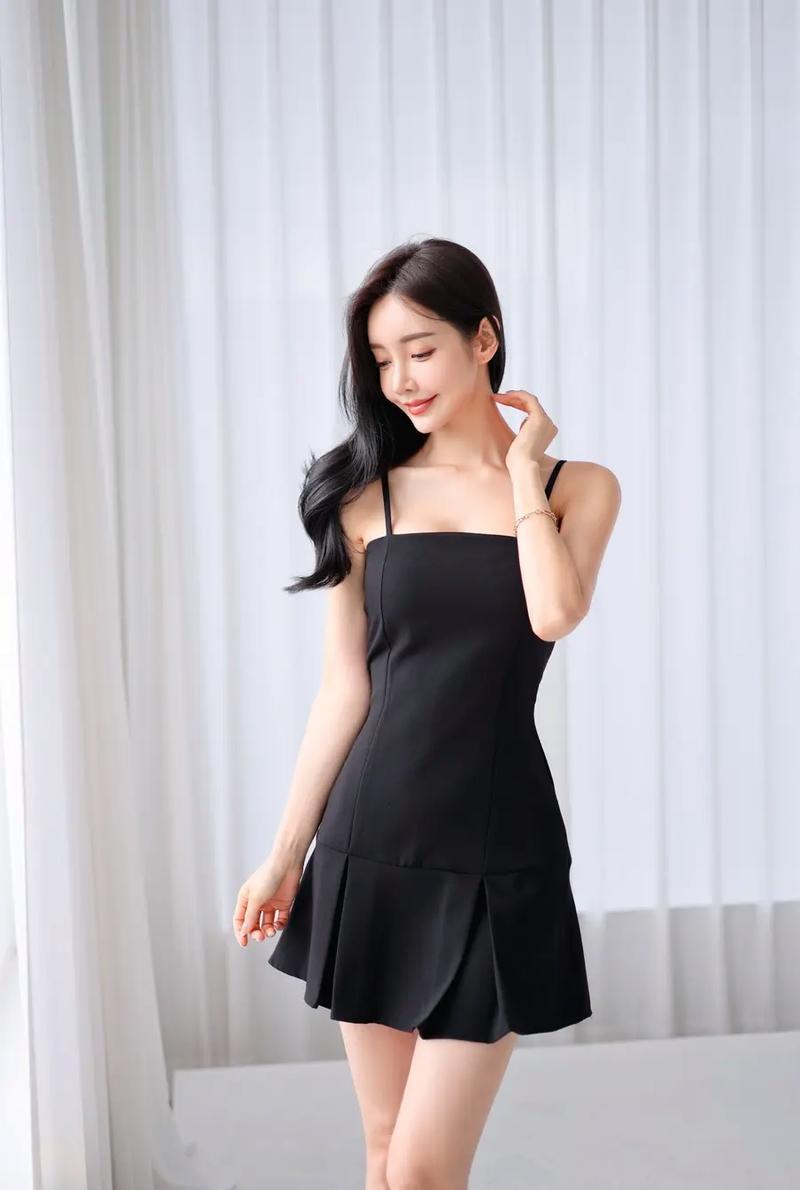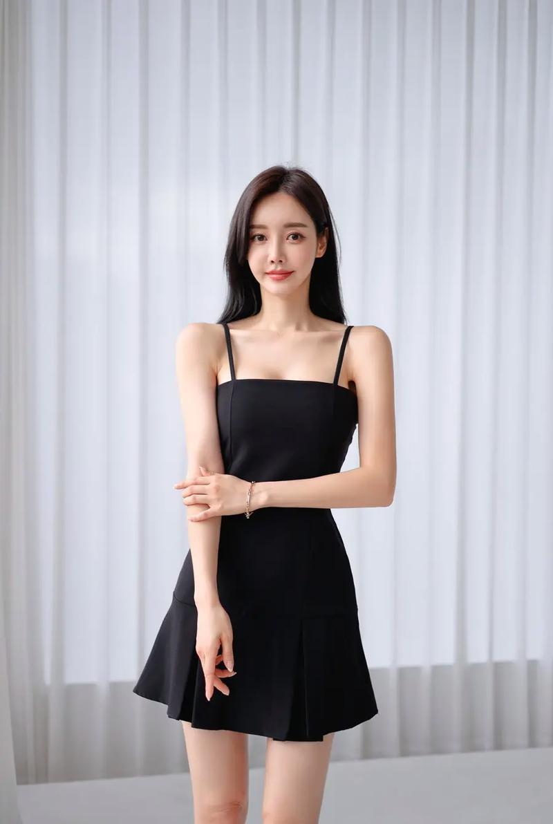 孙允珠的美图,你们喜欢哪种的黑色吊带连衣裙