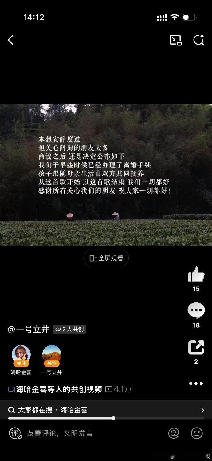 李亚鹏海哈金喜共创李亚鹏海哈金喜共创离婚视频 李亚鹏海哈金喜离婚消息官宣,孩子随母亲生活。两人 2020 年公开恋情,2022 年组建家庭。