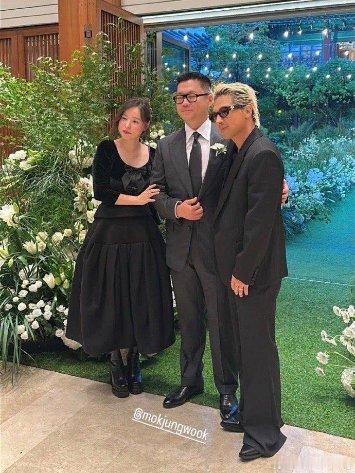 根据造型看更新的照片是前几天和太阳一起参加朋友婚礼时候的自拍[并不简单]