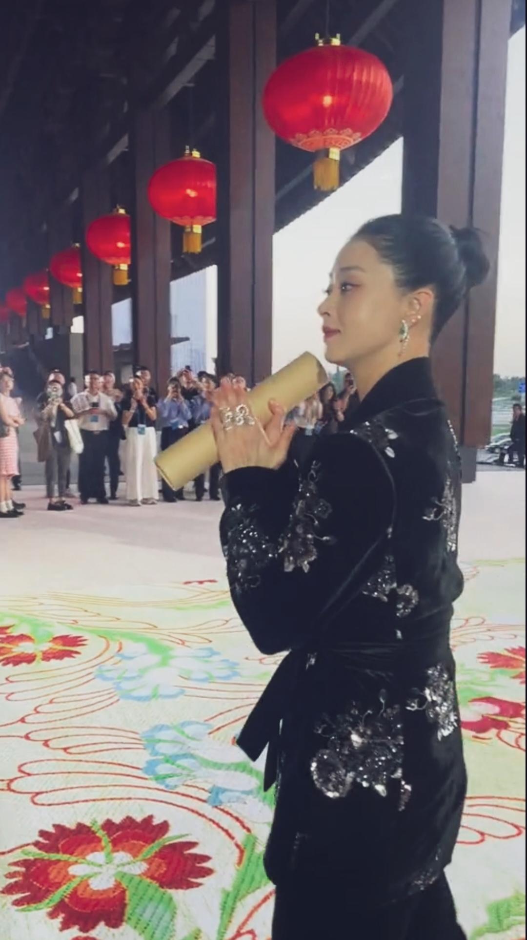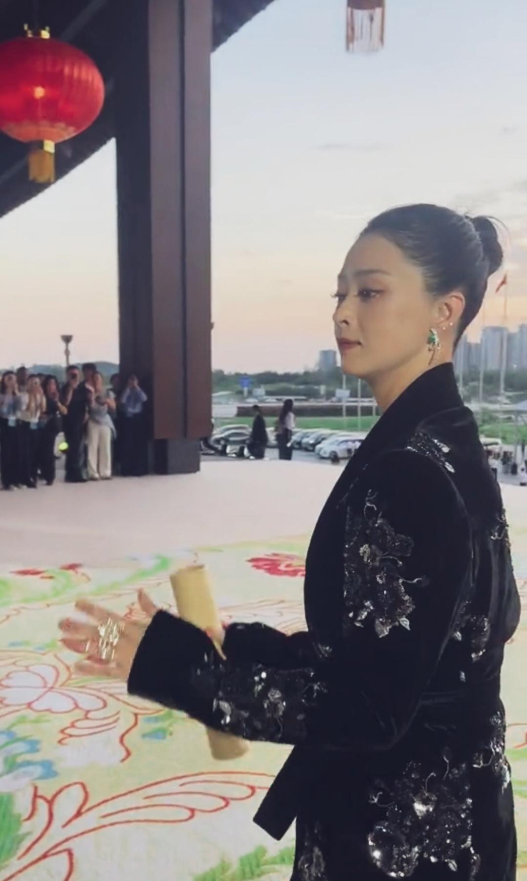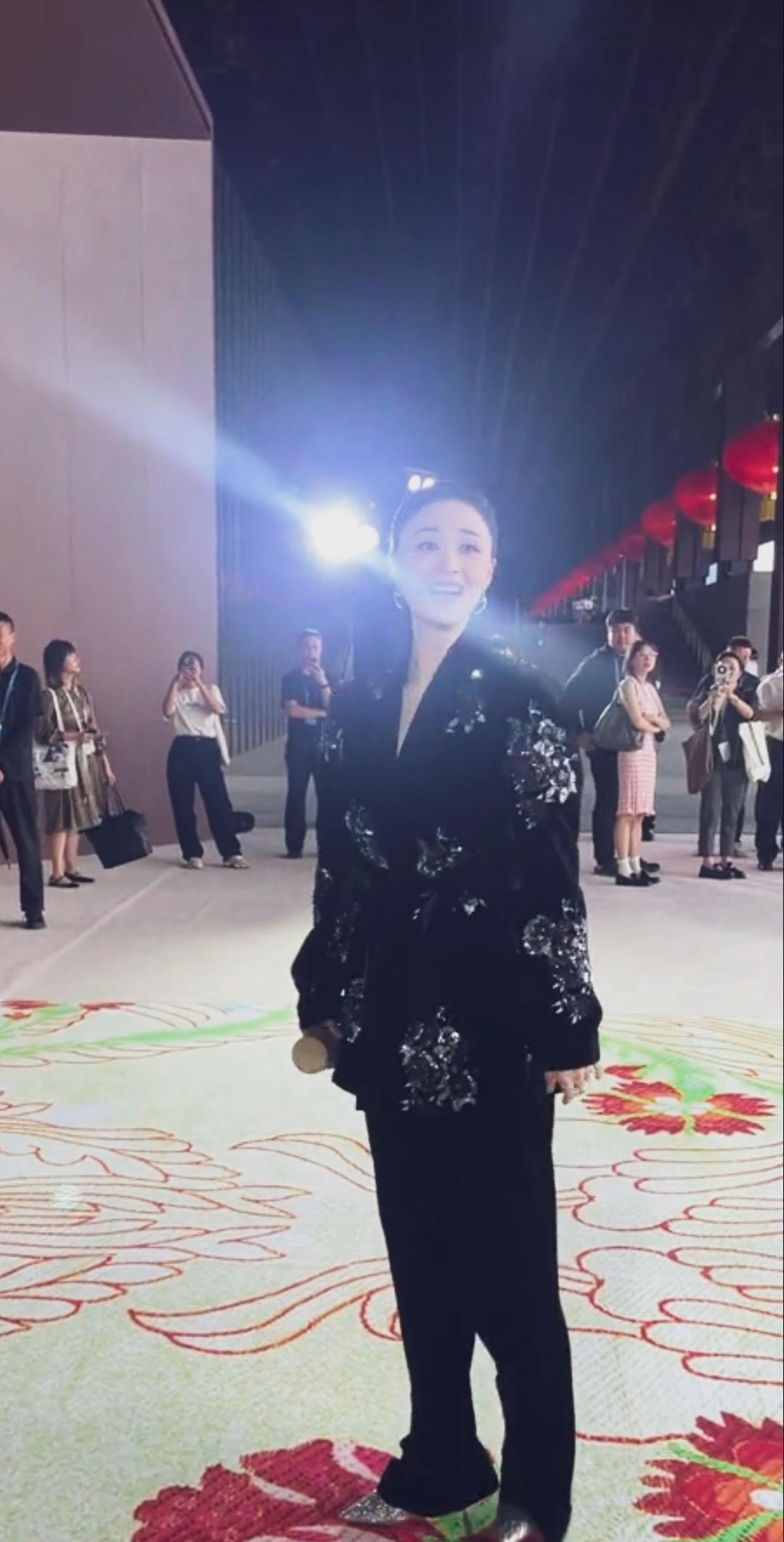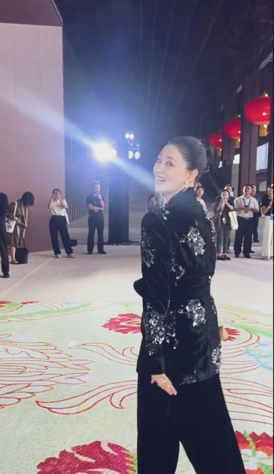 蒋欣身穿提花休闲西服,大光明发型,发髻高高挽起,皮肤又白又亮,笑的很开心。又美又飒!看不出年龄感!逆龄生长!#蒋欣#