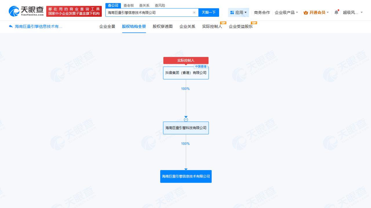 天眼查App显示,近日,海南巨量引擎信息技术有限公司成立,法定代表人为易鲁娜,注