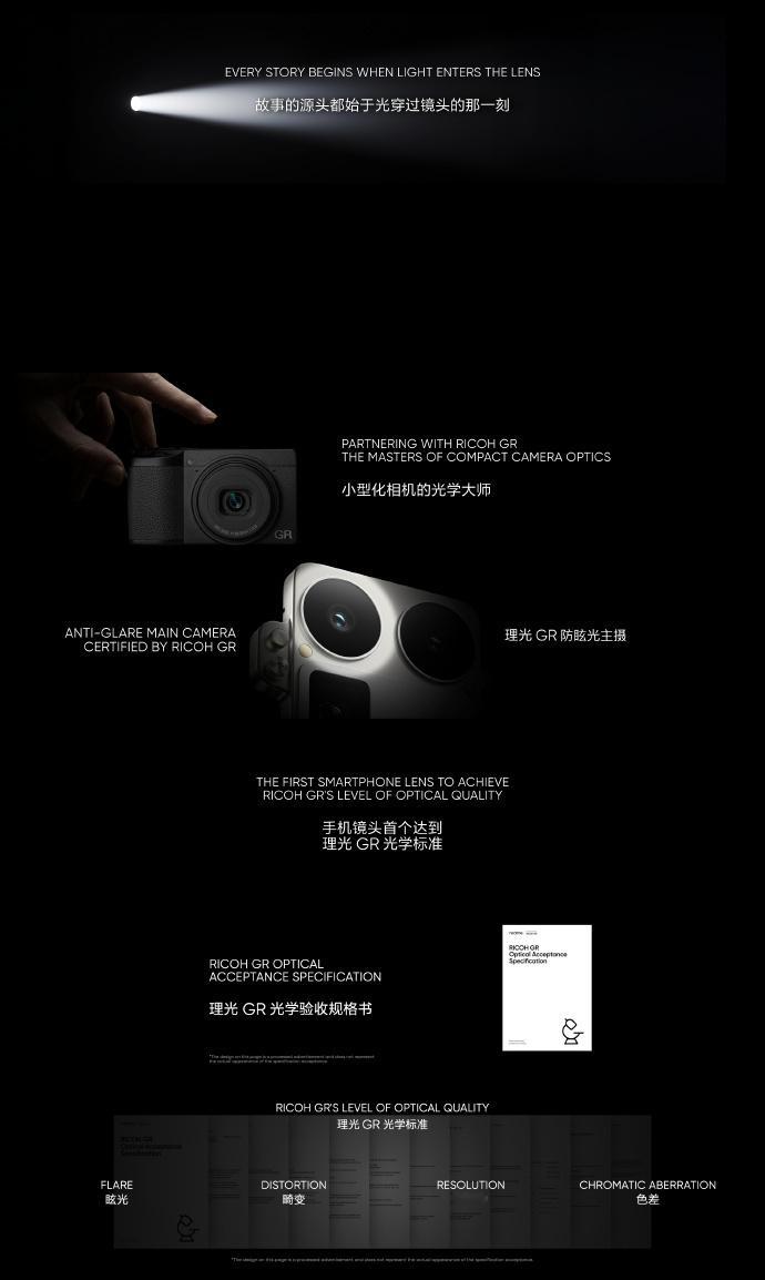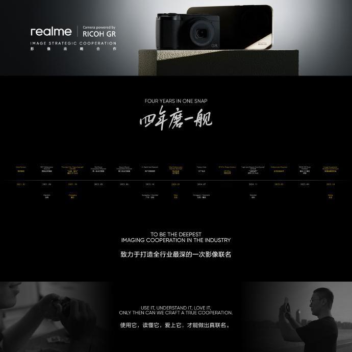 真我与理光合作,打造深度化影像联名,真我GT8 Pro从光学、设计、影调、个性化四大模块,进行了1000次核心技术测试,致力于打造全行业最深的一次影像联名
