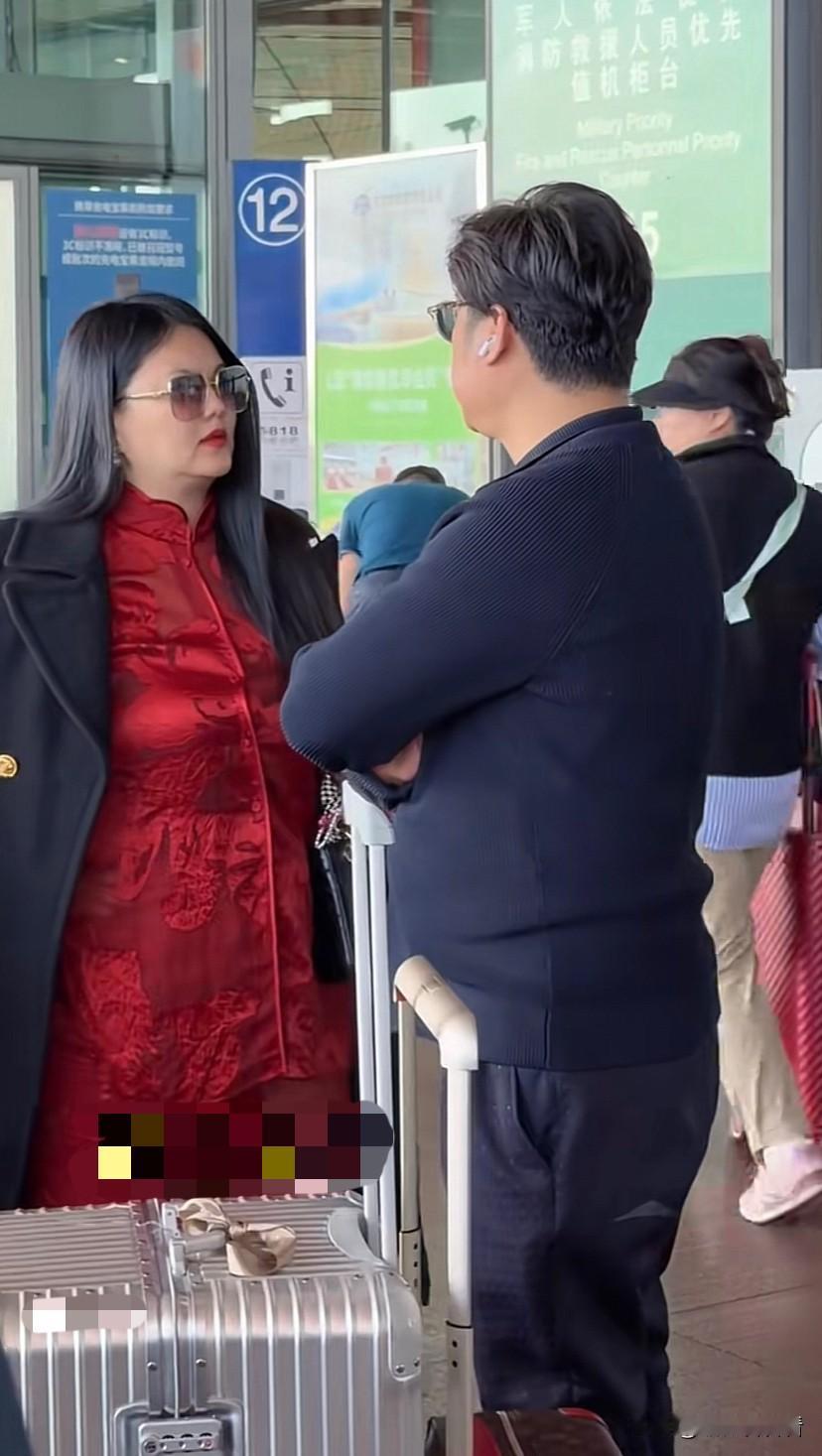 李湘王岳伦给女儿过完生日一起回国,李湘又胖了好多,在去英国之前还都说她瘦了,如今去了趟国又胖回来,王岳伦站在她旁边都显得瘦小了很多。 在机场李湘这身红色唐装太乍眼了,真的感觉像是穿了一身家居服,黑色外套披在肩上,戴着大框墨镜,那双黑色高跟鞋是她在机场常穿的鞋,真的是她标志性的穿搭。 两个离婚的人在一起就像亲人一样交谈,很是自然,在出机场时还跟粉丝挥手再见,一双小胖手还是染着玫红色指甲油,湘姐太爱大红色了,有在前面的湘姐像极了大姐大,前夫买后面就像小跟班,这气场真的是很足呀!