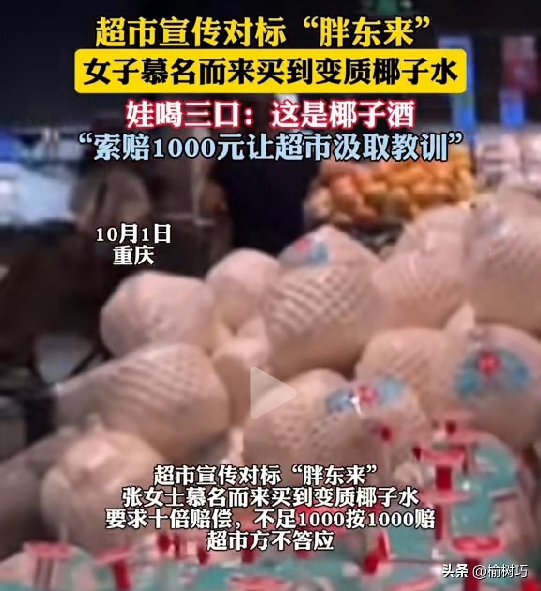 女子在超市喝到变质椰子水,超市却以没付款为由推卸责任。 10月1日这天,重庆一名女子领着孩子来到一家新开的超市。 女子听别人说,这家新开业没几天的超市各方面都非常的不错,据说还是仿照有名的胖东来超市模式运营的。 所以她今天舍近求远,领着孩子来到这家超市,打算采购一些生活必需品。 来到超市之后,女子看到这家超市的货品非常的齐全,并且这里的服务人员也非常的热情。 此时的女子感觉这家超市挺不错的,于是她就领着孩子打算在这家超市好好的逛一逛。 为了看看这家超市价格实不实惠,女子来到生鲜区,因为瓜果蔬菜是老百姓日常所需的东西,这些东西的价格最能体现出这家超市卖的东西贵不贵。 女子在生鲜区转了一圈之后发现,这里的瓜果蔬菜种类繁多,既新鲜,价格也非常的实惠。 女子心中窃喜,今天真是来对地方了,一会必须在这家超市多采购一些东西回去。 这时候女子的孩子指着一堆椰子说:“妈妈,我要喝椰子汁。” 女子扭头一看,发现这些椰子是即开即饮的新鲜椰子,椰子上面都给开了个口子,只要插上吸管就可以直接饮用。 女子一想,孩子既然想喝,那必须得给买一个呀!然后她就随手拿了一个,递给了孩子。 小孩子很高兴,伸手接过妈妈递过来的椰子,拿着吸管就开始喝了起来。 可刚喝了两口孩子就皱起了眉头,看他的表情有一种难以下咽的感觉。 女子很疑惑,就问孩子:“咋了,椰子汁不好喝呀!” 孩子:“这不是椰子汁,这是酒,一点都不好喝。 ” 这怎么可能?女子接过孩子手中的椰子,她尝了一口,结果她马上就给吐了出来。 原来这椰子汁已经变质了,里面已经发酵,都变成酒的味道了。 想到孩子已经喝到肚子里了,女子很是气愤,于是她就找超市理论,想要超市针对这个事给她一个合理的解释。 可是超市的做法却让女子很不满意,超市的人避重就轻,还想推卸责任。 他们只说自己这批椰子是通过正规渠道进来的,里面的椰子水是否变质,他们并不知道。 看超市如此说辞,如此耍无赖,女子决定给他们一些教训,当场就向他们提出1000块钱赔偿的要求。 可是超市当场就拒绝了她1000块钱赔偿的要求,拒绝的理由很简单。 那就是女子喝的这个椰子并没有付款,没有付款凭证,女子并不是他们超市的消费者,所以超市不会对她进行赔偿。 看到这里,感觉这家超市一点大的格局都没有啊!前面也说了,他想仿照那家有名的超市进行运营。 从这个变质椰子处理结果来看,这家超市注定学不来人家的精髓。 估计他也就止步于此了,以后也不可能有啥特色与其他超市竞争了。 跟其他超市一样,就是一个普通的超市了,消费者也不会大老远的跑他这来消费了。 再者说他这个推卸责任的理由也太牵强了,没付款不是消费者,他就不管了? 要这么说的话,那在饭店吃饭的时候也没付款呢!吃完饭再付钱,中间要吃出点毛病来,难道饭店也不管了? 这家超市的服务理念就不对,如果哪个顾客逛超市的时候不小心在店里摔倒了,人家即便没付款,那人家告他,超市也得赔偿医疗费。 所以说女子无需再和这家不讲道理的超市理论了,直接向质检部门和工商部门投诉他就完事了。 国家对于这种售卖以次充好、变质的东西,处罚力度还是相当大的。 到时候这家超市接受的惩处和罚款,肯定会远远超过这1000块钱的。饮品椰子水