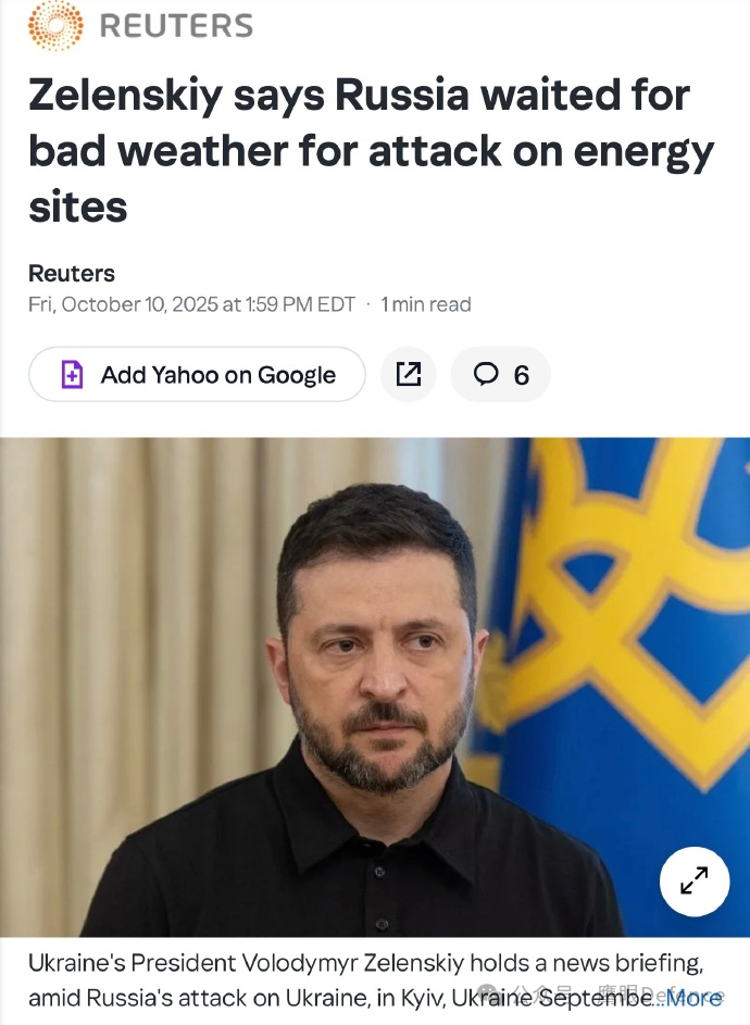据路透社报道,乌克兰总统泽连斯基表示,俄军现在故意等待恶劣天气对乌克兰能源基础设施发起大规模空袭,恶劣天气能导致乌克兰防空效率下降20%到30%,尤其是影响乌克兰战斗机、直升机等的出动。