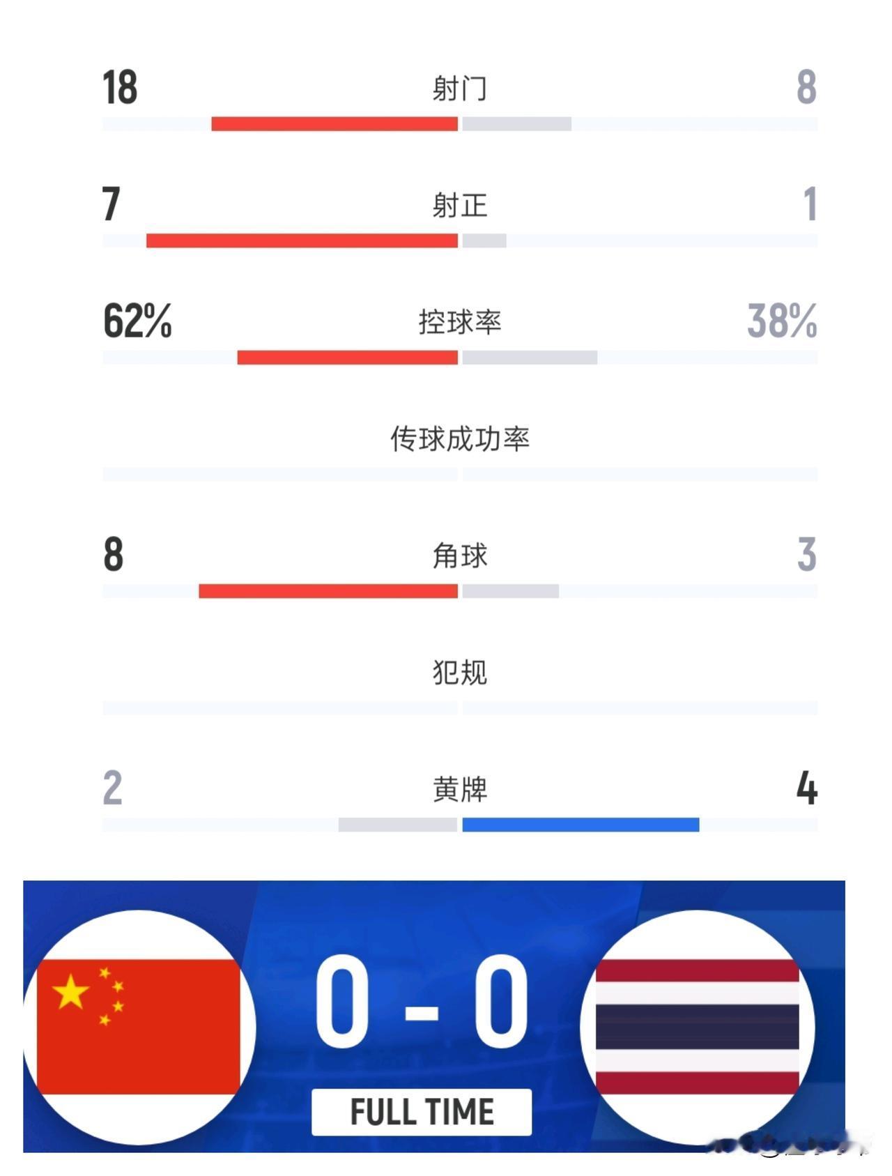 垮掉的一代,U22国足0-0闷平泰国U23! 懂球的都知道,U22国足就是未来成年国足队了,也是国足未来的希望,但是今天却连泰国都赢不了,射门次数18-8领先,射正7-1领先,控球率62%-38%领先,角球8-3领先,可以说全场压着打了,但是就是进不了球! 进个球有这么难吗?欧洲非洲各种小国家都在创造历史的赢球,我们面对曾经四流得到泰国都进不了球,这比输球更丢人了。 这代U22国足也基本没什么希望,以后别说世界杯了,18强都进不去了,真的是一代不如一代了。