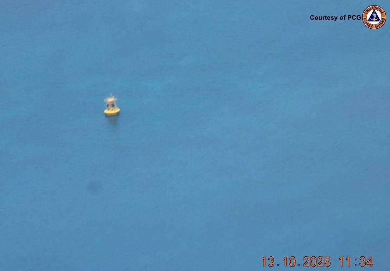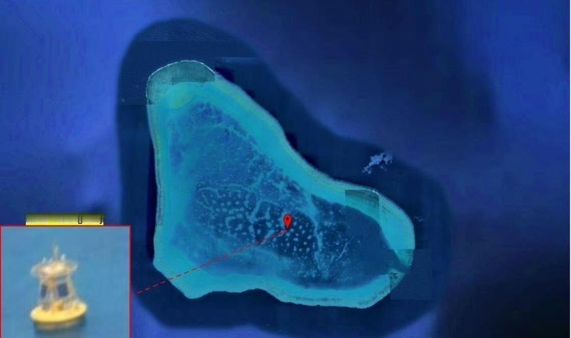 今天(10月14日)下午,菲海警XX事务发言人对媒体表示,在昨天(13日早上)的航拍中,发现在黄我国岩岛国家级自然保护区潟湖中央还布设了新的浮标(图1),这是在以前牠们从来没见过的新东东。PS:图2为浮标所处位置。