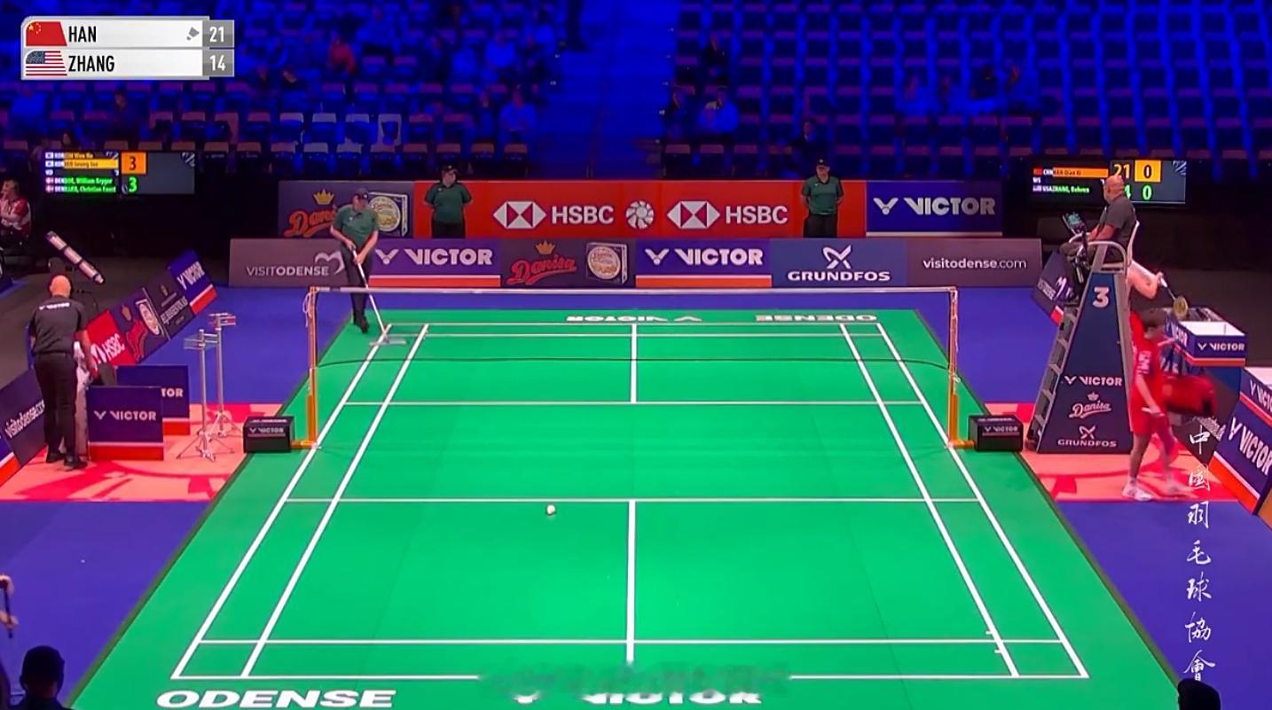 女单 1/16赛 第5场 韩千禧 21-14 张蓓雯拿下第一局!2025年丹麦羽