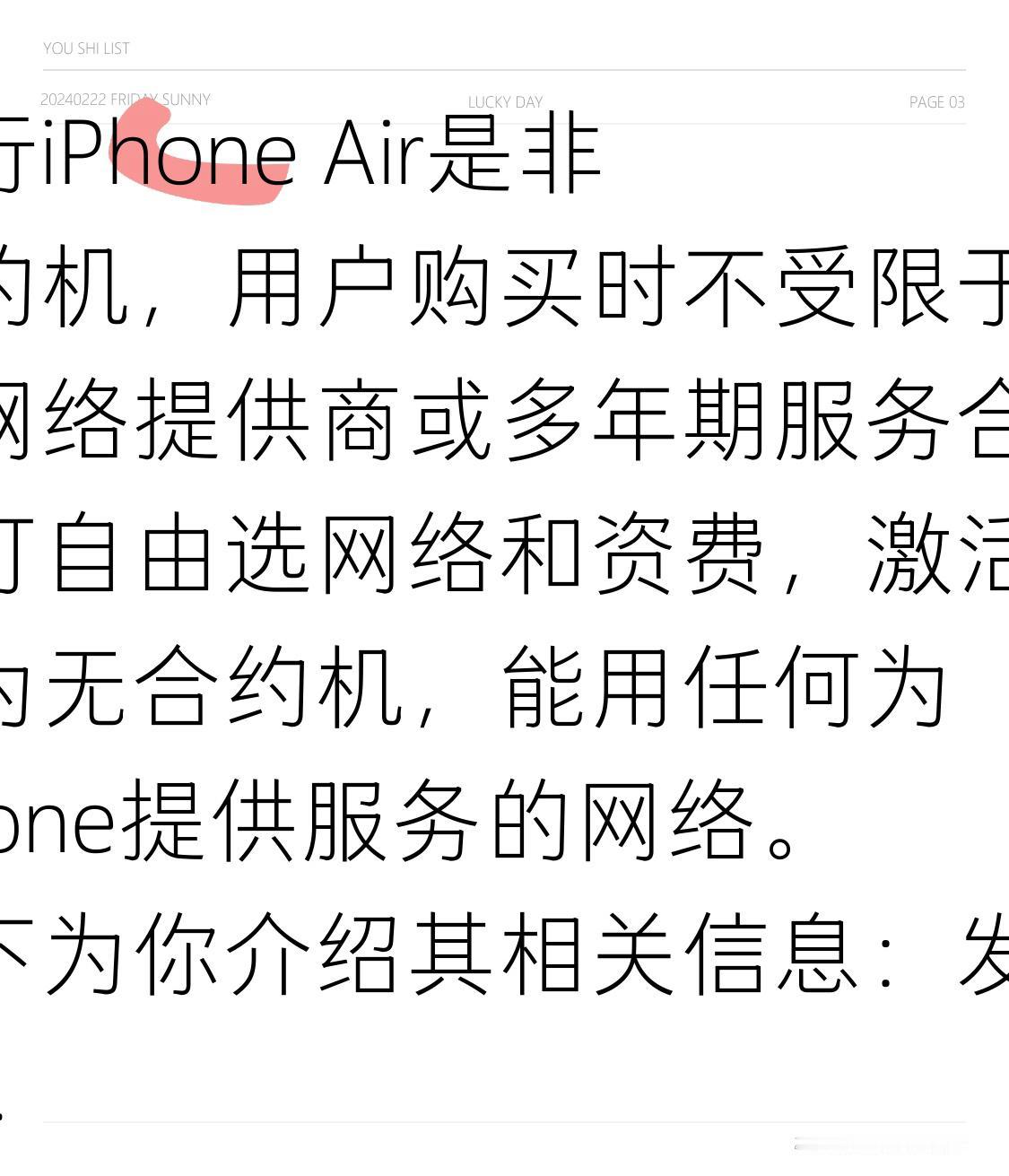 国行iPhoneAir是非合约机,用户购买时不受限于某家网络提供商或多年期服务