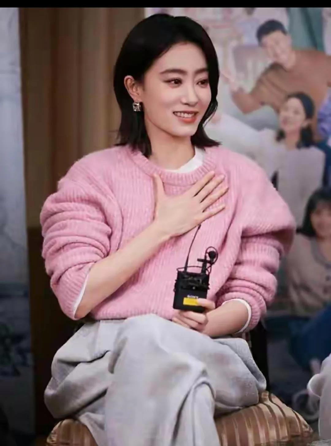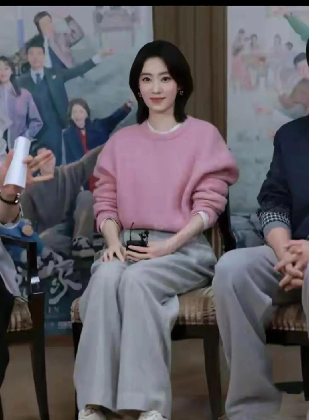 张小斐这状态绝了! 在活动现场的张小斐,一头利落短发,衬得脸蛋精致又小巧,满满都是温柔知性的大姐姐气场。 她身上这件粉色毛衣,软糯糯的色调太显嫩了,给人一种甜而不腻的清新感。搭配简约的灰色阔腿裤,宽松的版型不仅藏肉,还自带随性洒脱的气质,再踩上一双小白鞋,整体造型简约又舒适,松弛感直接拉满!无论是浅笑时的温婉,还是专注倾听时的优雅,都让人忍不住心动~ 张小斐 明星穿搭