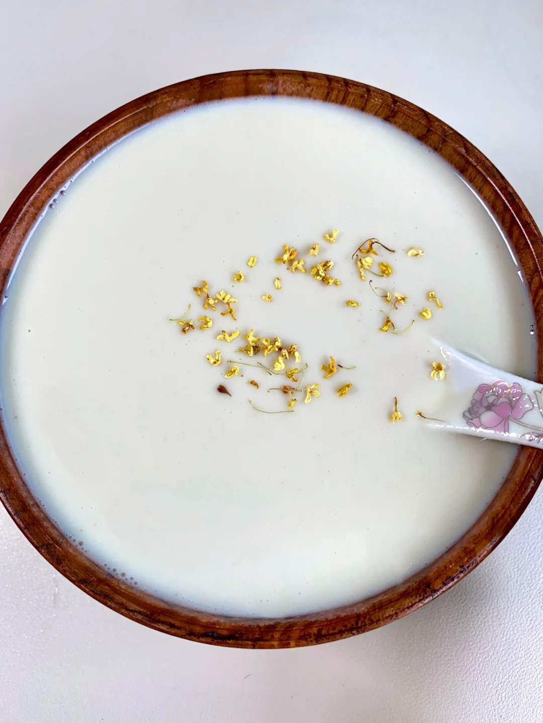 拜托!全都给我去喝!!真的巨巨巨好喝!! 好喝到我连碗都舔干净了😭!! 香醇浓郁!丝滑细腻!! 一定要试试这个豆浆配方!! 口感超越任何外面早餐店的豆浆!! 📝:黄豆50g、大米20g、小米20g、花生10g、冰糖少许 ✔️食材洗净放入破壁机,豆浆模式即可~ 丝滑香浓!好喝到起飞!! 撒点桂花,就更香了!!养颜又健脾!