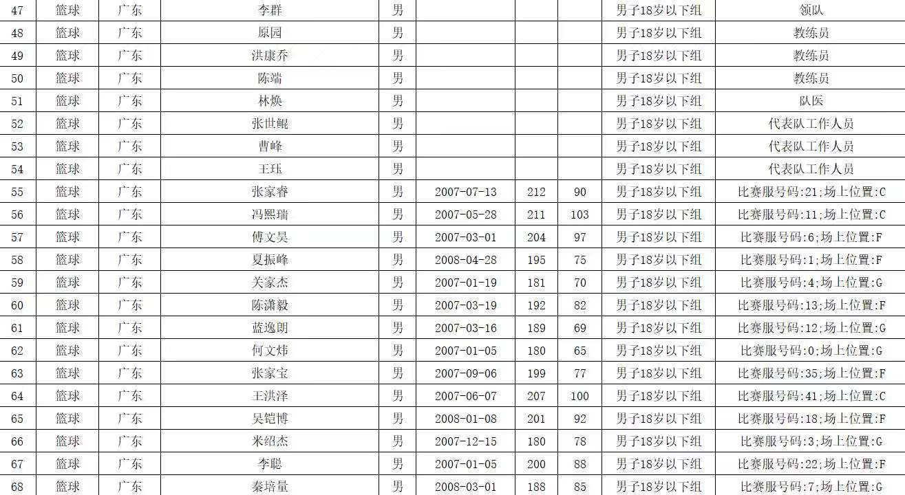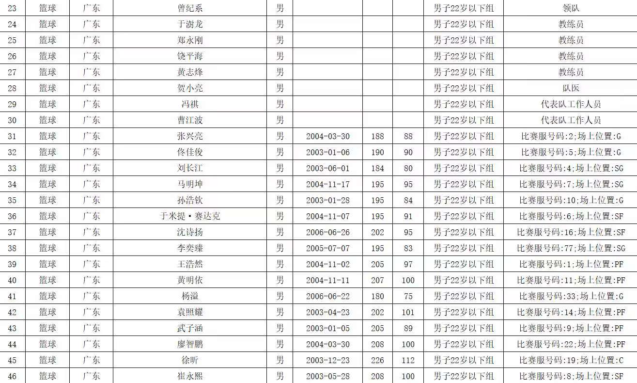 三个组别都有广东宏远的球员,成年组主要是徐杰、胡明轩、杜润旺、任骏飞、焦泊乔。U22组有杨溢、崔永熙、黄明依、李奕臻。U18组有张家睿、王洪泽。