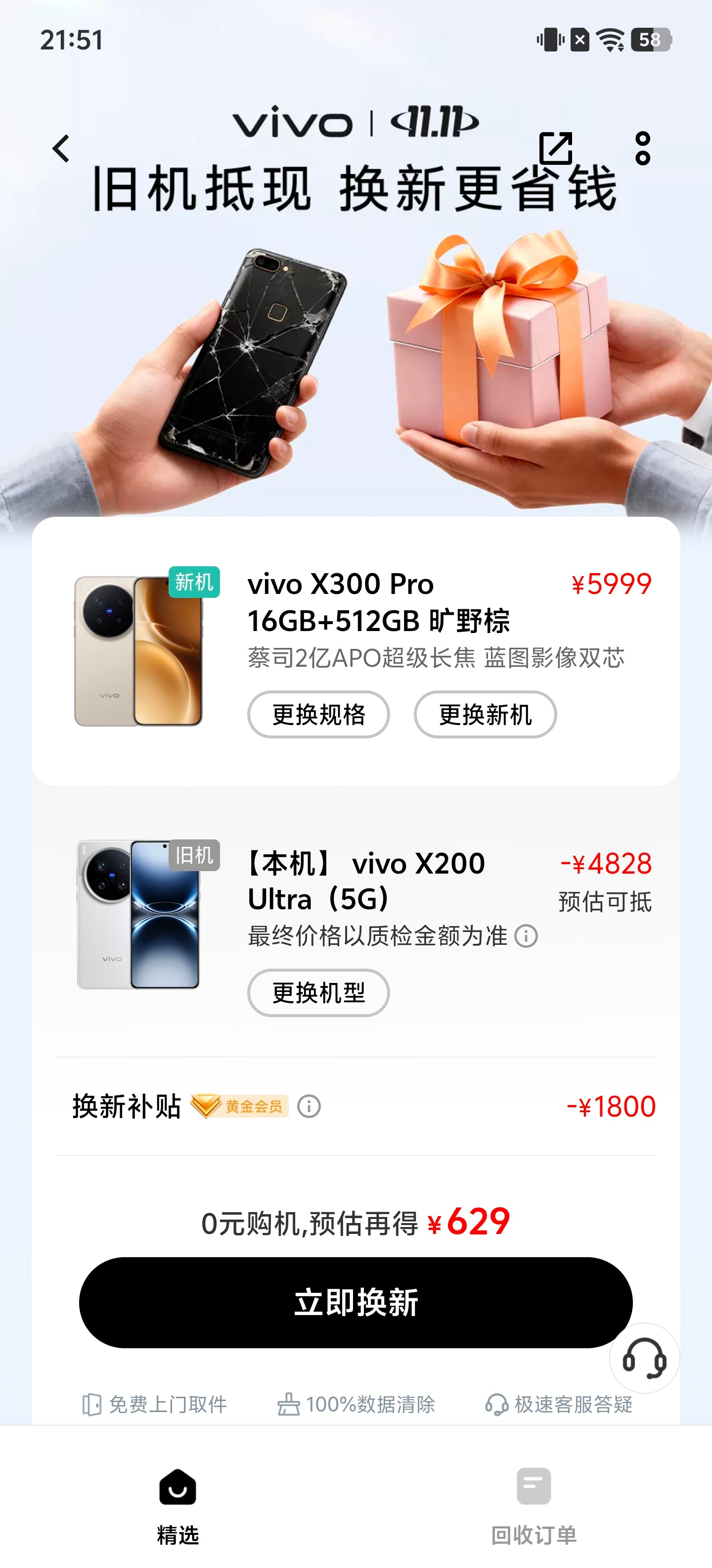 另外,如果你在换新页面看到的是图二,用vivo X200 Ultra以旧换新买同容量的vivo X300 Pro,vivo还要再给你600多。