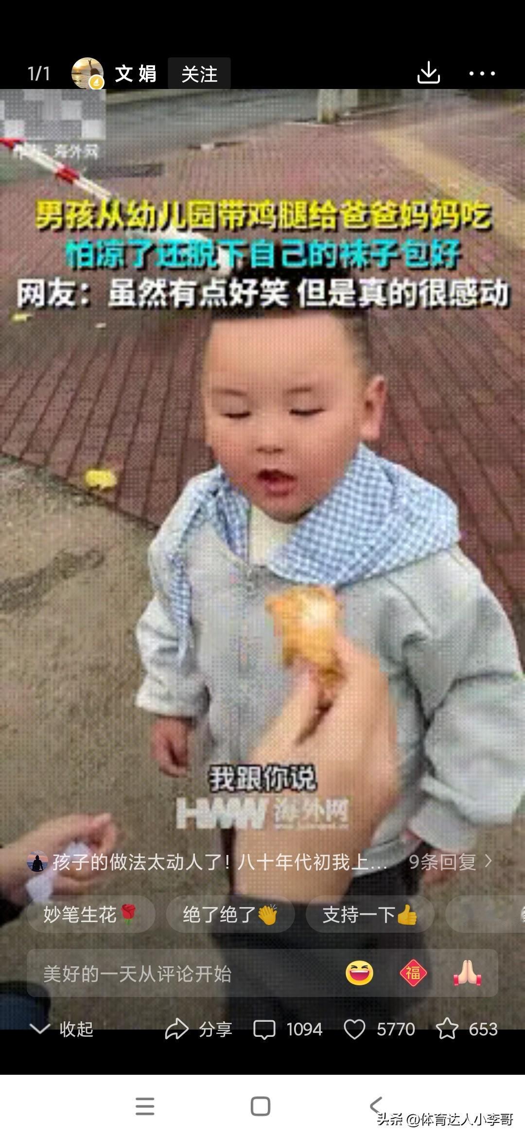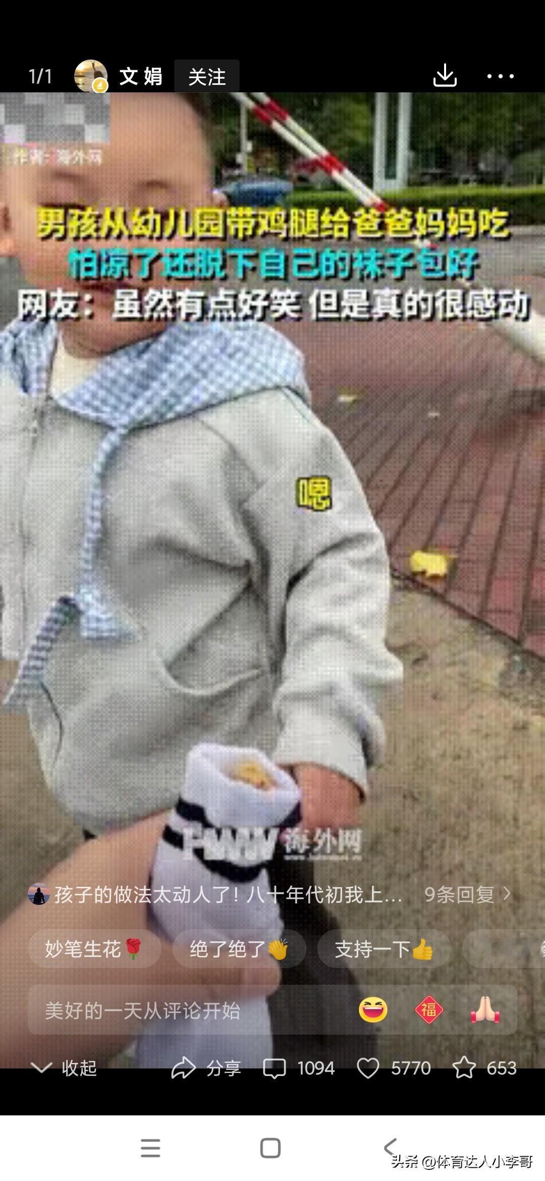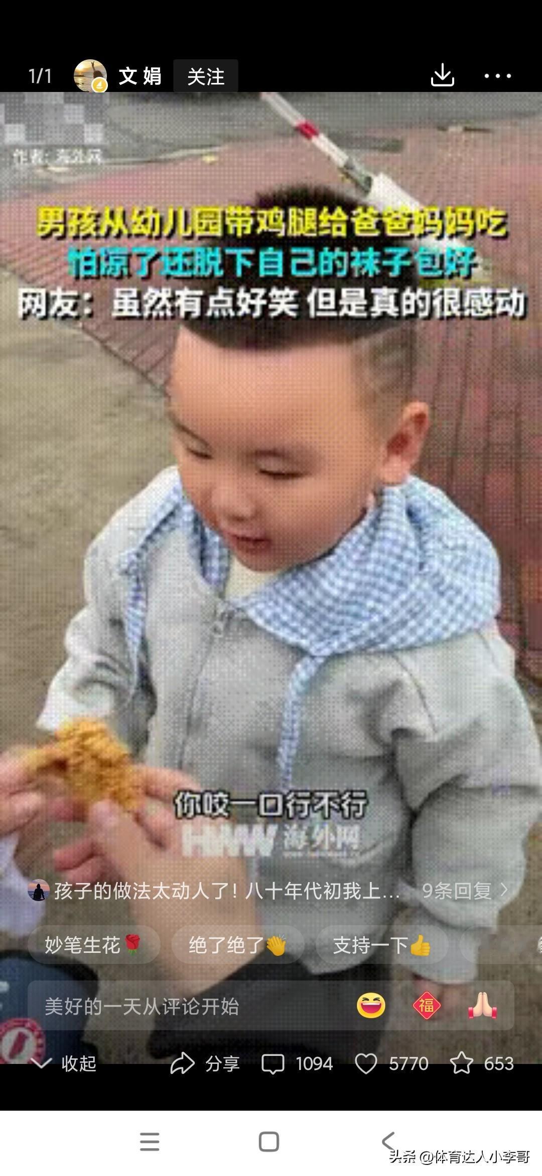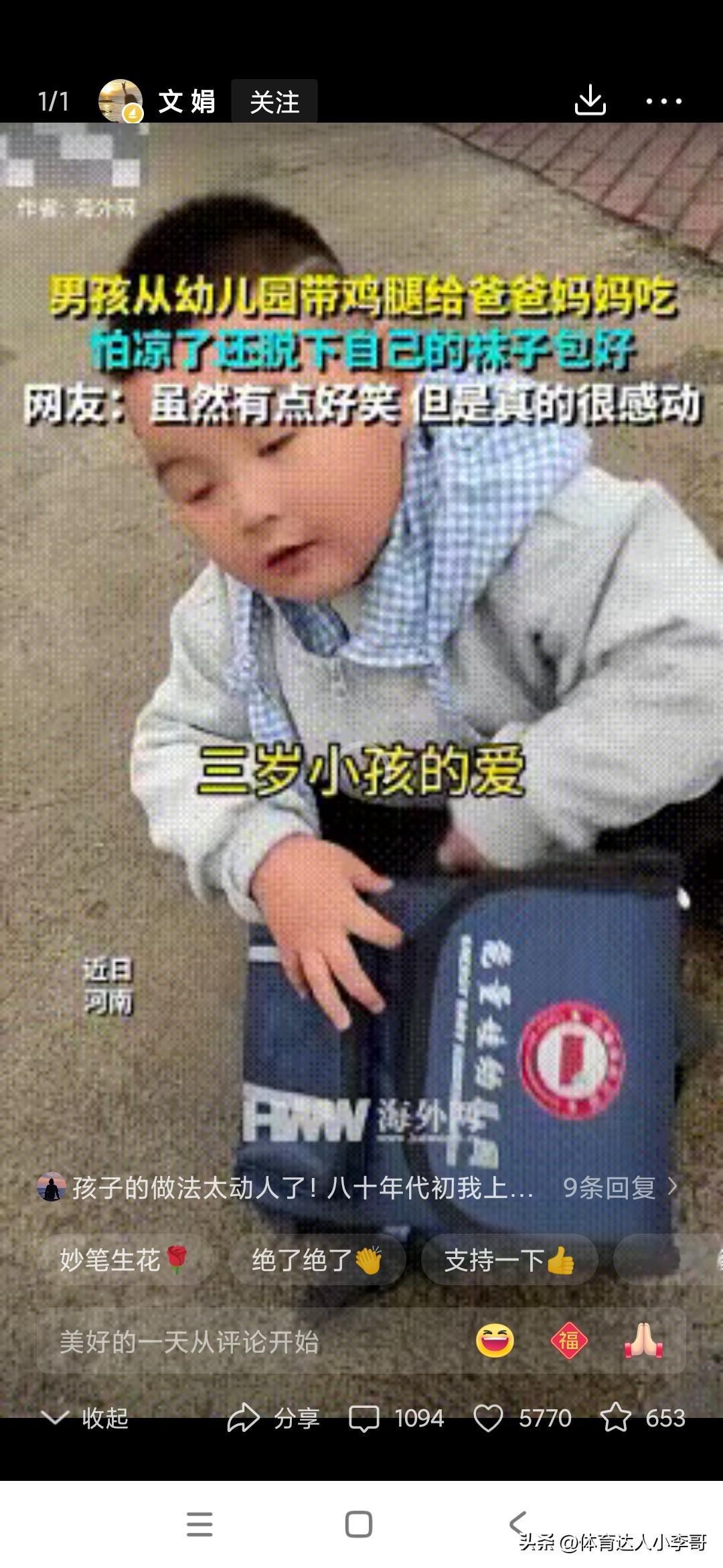 我现在仍然记得当我的外甥叫我老妹妈妈的时候,我的老妹有多么开心,多么激动,所以说我可以理解这家孩子用袜子带了一个鸡腿儿给爸爸妈妈,他们有多么开心和欣慰,而且把鸡腿从袜子里拿出来,爸爸一口,妈妈一口,还给儿子一起分享,儿子可能什么也不懂,但是这一刻其实确实是温馨到太多的人了,人民日报都转载了,这就是家庭和爱的意义吧,所以说年轻人还得生孩子呀,不生孩子的话,有些情感你是没有办法感觉到的!