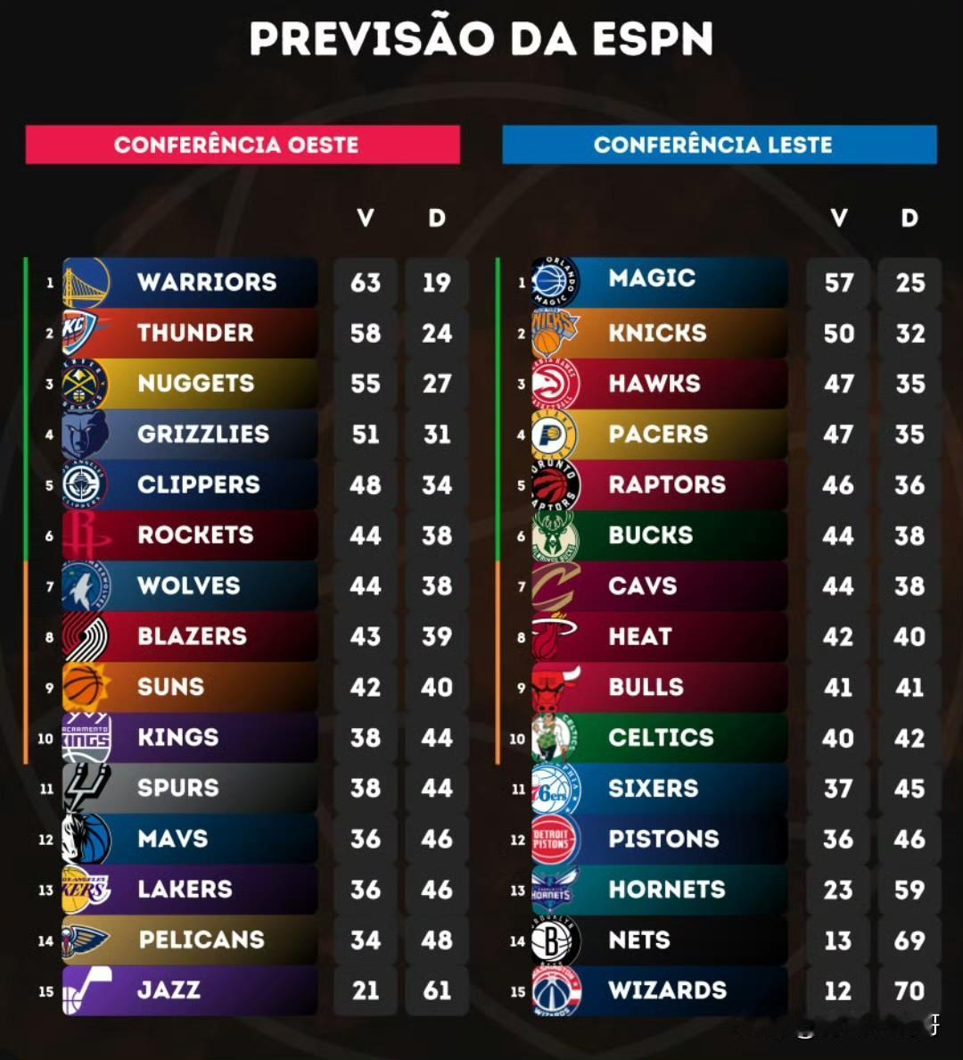 这个模拟有点不靠谱!!!ESPN新赛季模拟,魔术击败勇士夺冠! 新赛季下周就要拉开序幕了,ESPN也是对新赛季的战绩及季后赛进行了一波预测,只不过这次预测看着很不靠谱,大家可以一起看一下。 魔术和勇士分别是东西部的常规赛第一名,我们不怀疑勇士的实力,但是拿到63胜也还是有难度的吧,上赛季的冠军雷霆屈居第二。 开拓者直接来了个大惊喜,他们以西部第八的成绩进入了季后赛,超越了湖人、独行侠、马刺和国王,湖人更是附加赛都没进,更别说季后赛,直接进乐透区了……[捂脸][捂脸][捂脸] 东部其实都有可能,魔术在球员都健康的情况下拿下东部第一是有可能的,骑士的排名还是比较低的,绿衫军和76人无缘季后赛。 最后经过层层分区决赛,最终勇士和魔术笑到了最后,而魔术这帮年轻人成功击败了经验丰富的勇士,大家觉得这个模拟靠谱吗?