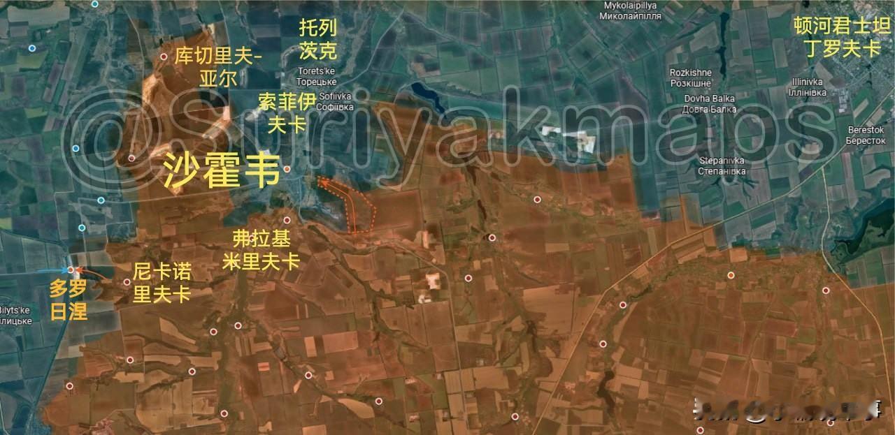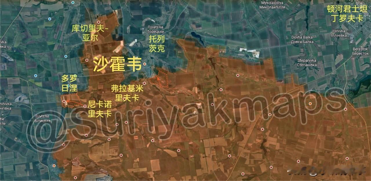 10月13日—14日俄乌最新战报: 1.苏梅州前线(10月13日,图一): 过去四天里,乌军继续在奥列克西伊夫卡村推进,抵达了该村中心。 2.恰索夫亚尔和索莱达尔方向前线(10月13日,图二): 经过三个月的阵地战,俄军开始占领新马尔科韦村南部水渠西面的战壕。 3.沙霍韦前线: (10月13日,图三): ①俄军继续向弗拉基米里夫卡村东北方向推进,并进入了沙霍韦村。 ②俄军与乌军在多罗日涅地区的冲突重新开始。 (10月14日,图四): 俄军控制了沙霍韦村东南部的新区域,并重新夺回了多罗日涅村。 4.季米特洛夫前线: (10月13日,图五): 俄军控制了科扎茨克村,并进入了季米特洛夫市。 (10月14日,图六): 俄军控制了巴拉甘村(其与乌军在与科扎茨克村相邻的南部别墅区冲突仍在继续)。 5.顿涅茨克州—第聂伯罗彼得罗夫斯克州前线(10月13日,图七): 过去一周里,俄军和乌军均在顿涅茨克州和第聂伯罗彼得罗夫斯克州的交界区域之间取得了进展。 6.库皮扬斯克前线(10月14日,图八): 在大部分乌克兰士兵撤退后,俄军开始占领库皮扬斯克市西北部的剩余地区。 俄罗斯军事战报 俄罗斯前线战报 顿涅茨克战场 库皮扬斯克战斗 库皮扬斯克战事 莫斯科战报 顿涅茨克激战