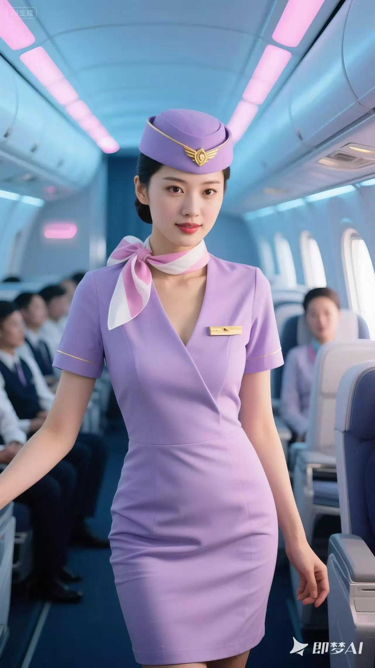 紫色紧身制服的美女空姐(190)空姐穿搭 时尚空姐服 清纯空姐 空姐职业制服