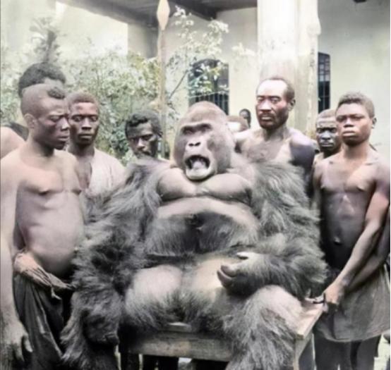 1932年,在非洲刚果某个部落,一群黑人捕捉了一只体型庞大的黑猩猩。这群部落里的男人们,强迫这只黑猩猩坐在中间,与他们几个合影。 一张黑白照片在网上流传多年。模糊的背景、粗糙的边框、斑驳的光影——画面中央是一只体型巨大的黑猩猩,四周围着几名面无表情的男子。 人和动物在阳光下对立,彼此都带着某种被迫的静止。没有人能确定是谁按下了快门,也没人知道这张照片为何被拍下。它像一块碎片,从殖民时代的深处漂出,提醒人们那个充满矛盾的世界。 镜头下的非洲,并不平静。二十世纪三十年代,比属刚果仍被殖民者紧紧控制。橡胶、矿石、象牙从丛林深处被运出,城市的码头堆满货箱,殖民地的财富沿着铁路运往欧洲。 当地人被迫为公司劳作,征税、劳役、惩罚成为日常。欧洲摄影师随军或随商而来,扛着沉重的相机,把热带的风景、部落的仪式、动物的尸体都变成影像。每一次快门,都是权力的宣告。 黑猩猩的身影在那时格外受关注。它被看作“人类的近亲”,又被当作野性象征。殖民官、传教士、探险家纷纷组织捕猎,企图抓到活体送往欧洲。动物园需要新奇展品,科学机构需要标本。 比利时皇家自然科学研究所、巴黎国家自然博物馆都在刚果设有采集点。捕捉黑猩猩的过程常伴随暴力与死亡,整个族群被枪声惊散,留下的幼崽被铁链捆住,送往港口。 在这样的背景下,那张照片的场景便显得格外刺目。几名男子围着被制服的黑猩猩,他们的神情木然,仿佛面对战利品。有人说这些人是当地雇佣的猎手,也有人说是欧洲殖民者的随从。 无论身份如何,他们都被镜头固定在同一画面中,成为被殖民与征服的双重象征。影像的意义不止在于记录,更在于展示——展示力量、展示异域、展示秩序。 当时的欧洲观众对这种影像充满好奇。殖民摄影集、展览、博物馆陈列层出不穷。展板上写着“原始部落”“野生巨猩”,参观者挤在玻璃柜前指指点点。 影像成为帝国自我叙述的一部分,告诉观众远方的土地已经被“文明”接管。被拍摄的对象却没有选择,他们的身体、他们的环境,都被变成被观看的对象。 学者后来称这类影像为“视觉殖民主义”的典型。相机的视角取代了人类的平等,镜头背后的操控者掌握解释权。对于被拍摄者而言,无论是人还是动物,都在被他者的凝视中失去声音。 那些照片在殖民母国被当作“科学”“人类学资料”,在当地则成了屈辱的记忆。影像的传播强化了刻板印象——非洲是野性的,欧洲是理性的,文明与原始被粗暴地划出界限。 几十年后,一些档案被重新打开。比利时皇家非洲博物馆的库房里,成百上千张照片被翻出,编号、修复、重新编目。研究人员在照片背面发现手写的日期与地点——1932,刚果中部。 部分影像拍摄者为殖民军官,也有的是随队传教士。那张“黑猩猩合影”的底片在档案中并未出现,更多学者认为它可能出自当年的猎人或贸易商之手,被误传为“部落照片”。 这类影像的重新曝光引发争议。有人认为应公开展示,提醒人们殖民时代的真实;也有人主张封存,以免再次伤害后代。 学者们尝试在展览中赋予新语境——不再强调“猎奇”,而是揭示历史关系。策展人用新的说明文字标注每一张照片的来历,强调这些影像的政治性与暴力性。 观众在灯光下观看时,能感受到一种压抑:画面看似平静,背后却是血与权力的交织。 与此同时,非洲学界也开始重新审视这些照片。刚果的历史学家在研究报告中写道,这些影像并非单纯的殖民记录,更是国家记忆的一部分。 它们提醒人们如何被描绘、被定义,也促使人们思考如何重新讲述自己的历史。一些年轻摄影师开始在原址拍摄新的作品,用现代视角回应旧影像。他们站在同样的土地上,让镜头回望当年的方向,试图夺回叙述的主动权。 动物学家也从另一角度阅读这些资料。1930年代的类人猿捕捉行动,导致中非黑猩猩数量锐减。研究者根据猎获记录、运输档案,估算当时每年约有上千只黑猩猩被捕获或杀死。 许多标本如今仍存放在欧洲博物馆,标签上写着“采集地:刚果”。这些冷冰冰的数据,连同那张模糊的照片,共同揭开了一段被掩埋的生态灾难。 如今,那张“1932年的影像”仍在网络上被不断转载。有人把它当作猎奇故事,有人把它视为人类残酷的象征。每一次转发,都让这段历史重新被提起。 照片中的人物早已无从辨认,黑猩猩的命运也无从追问。留下的只是时间的沉默和观看者的反思。 当人类第一次拿起相机时,也许并未意识到,镜头能成为权力的工具。它能记录,也能剥夺。那张照片像一面镜子,映出人类在追求文明名义下的野性。 1932年的刚果,阳光刺眼,影子更深。照片中的一切都已尘封,但那被凝视的瞬间,却仍在提醒——真正需要被拯救的,从来不只是被拍摄的世界,还有按下快门的人类自己。