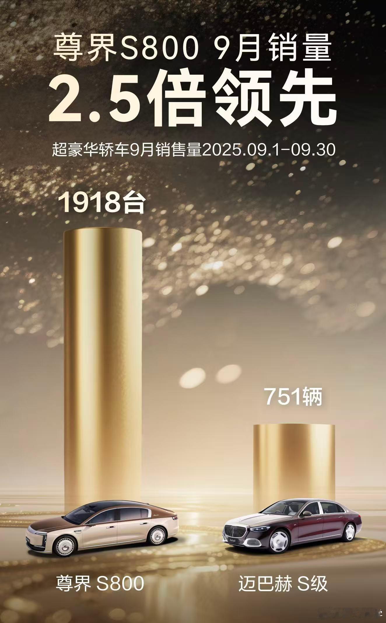 中国超豪华车金九交付量断层领先尊界S800以1918台的交付成绩断层领先中国品