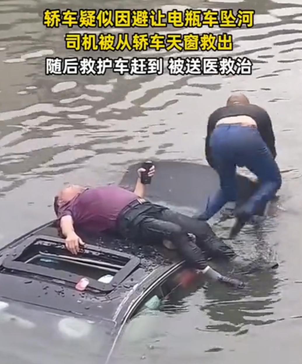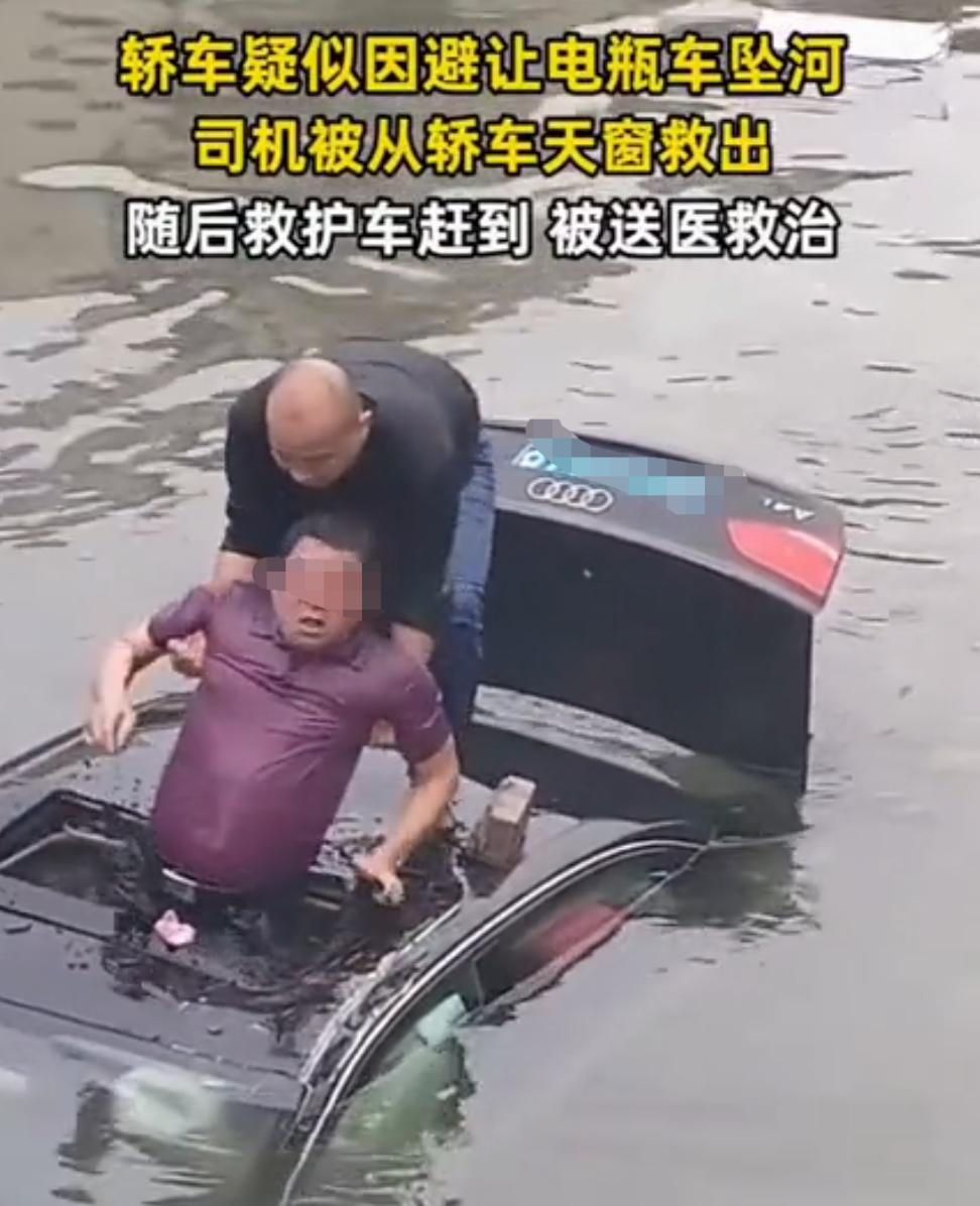 10月14日,江苏泰州一轿车不慎坠河,司机被困车中,情况万分危急。 据知情人说,司机是为了避让电动车,疑情急之下操作不当冲入河中。一男子路过见状,不由分说急忙跳入水中,从水中摸出块大石头,使劲砸车子天窗,最终将司机救出。 很快砸窗救人的男子被网友扒出,叫狄双成,是中铁建港航局集团泰兴港务有限公司的一名职工,还是名退伍军人。 事发当天狄双成带着妻子和2岁几孩子逛街,偶遇了这起事件,然后挺身而出。司机被救后送医,而狄双成也仅仅是受了点刮伤。 现场目击者事后表示仍心有余悸,直言:被困者能保住性命全靠救援及时,再晚一会儿,人可能就被河水闷在车里了。” 隔着屏幕都感受到狄双成胆大心细,还不莽撞。他表示以前也救过人,还被讹过,但即便是再遇到,仍会出手,展现了退伍军人退伍不褪色的品质,为救人英雄点赞,应该申报“见义勇为奖”! 坠河汽车 汽车不慎坠河 男子跳河砸天窗救人