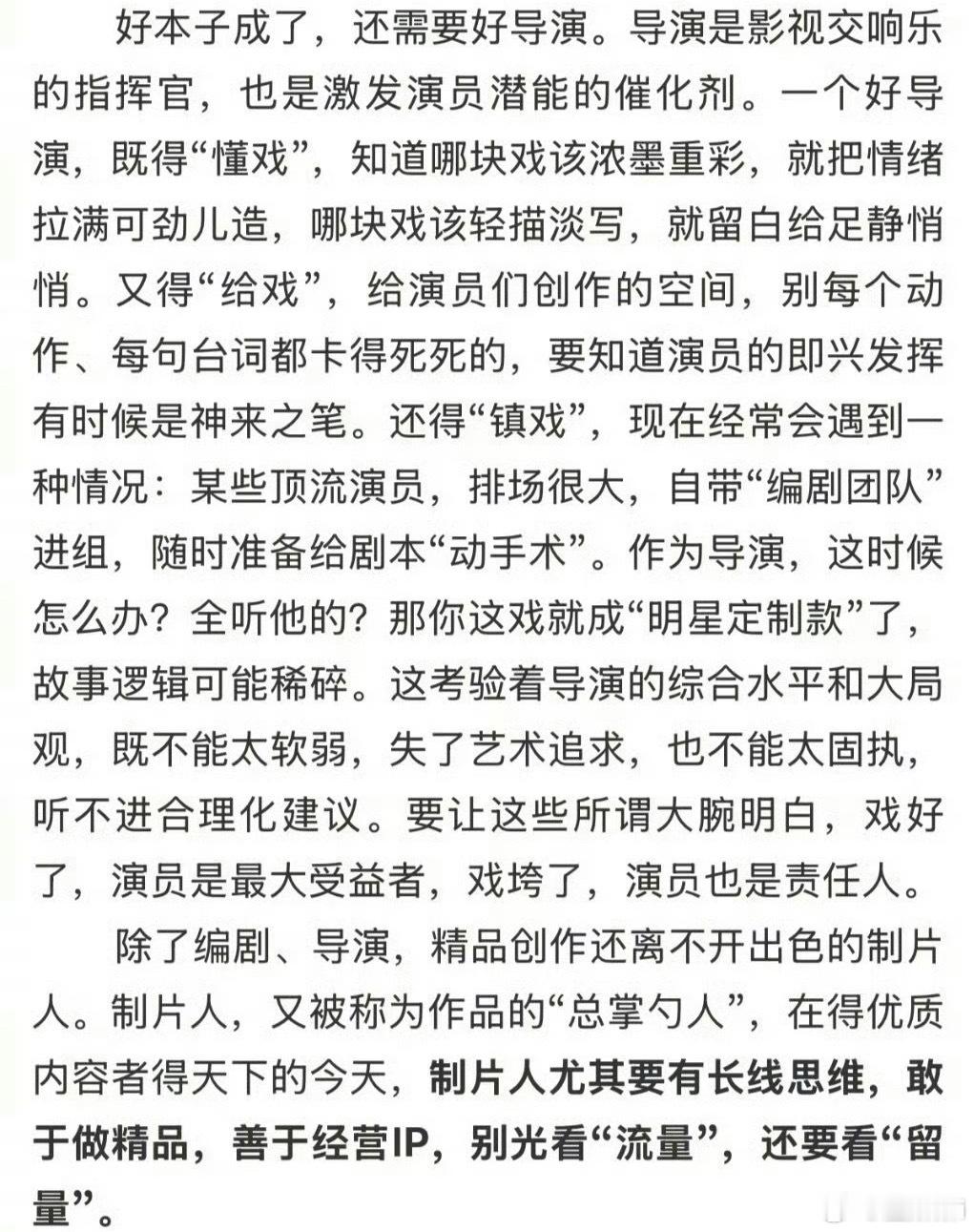 意思是导演又要给演员留白空间,又要镇住演员不能按自己要求改戏,讲的是导演的作用举例了一些行业乱象,怎么就变内涵[泪奔]