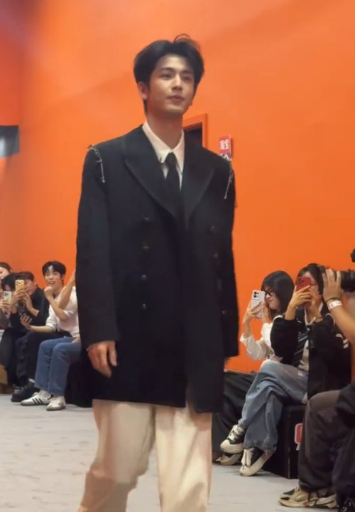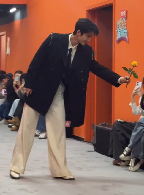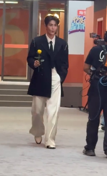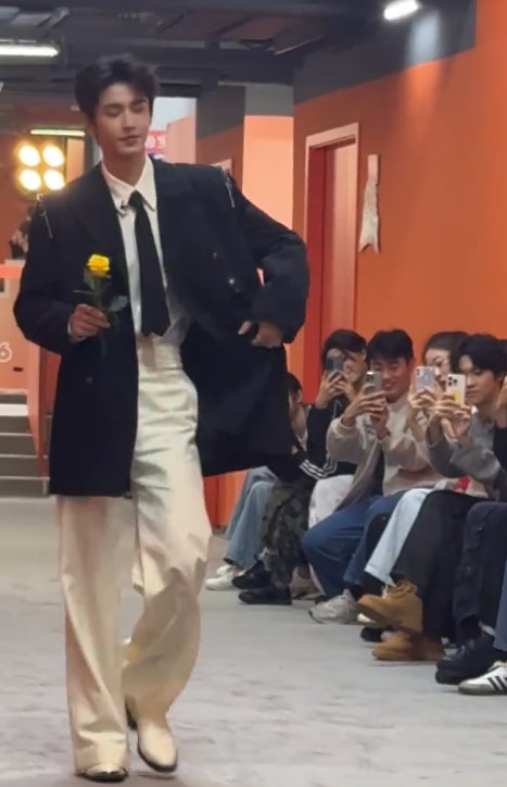 张凌赫拿黄玫瑰出场 张凌赫真超模登场
