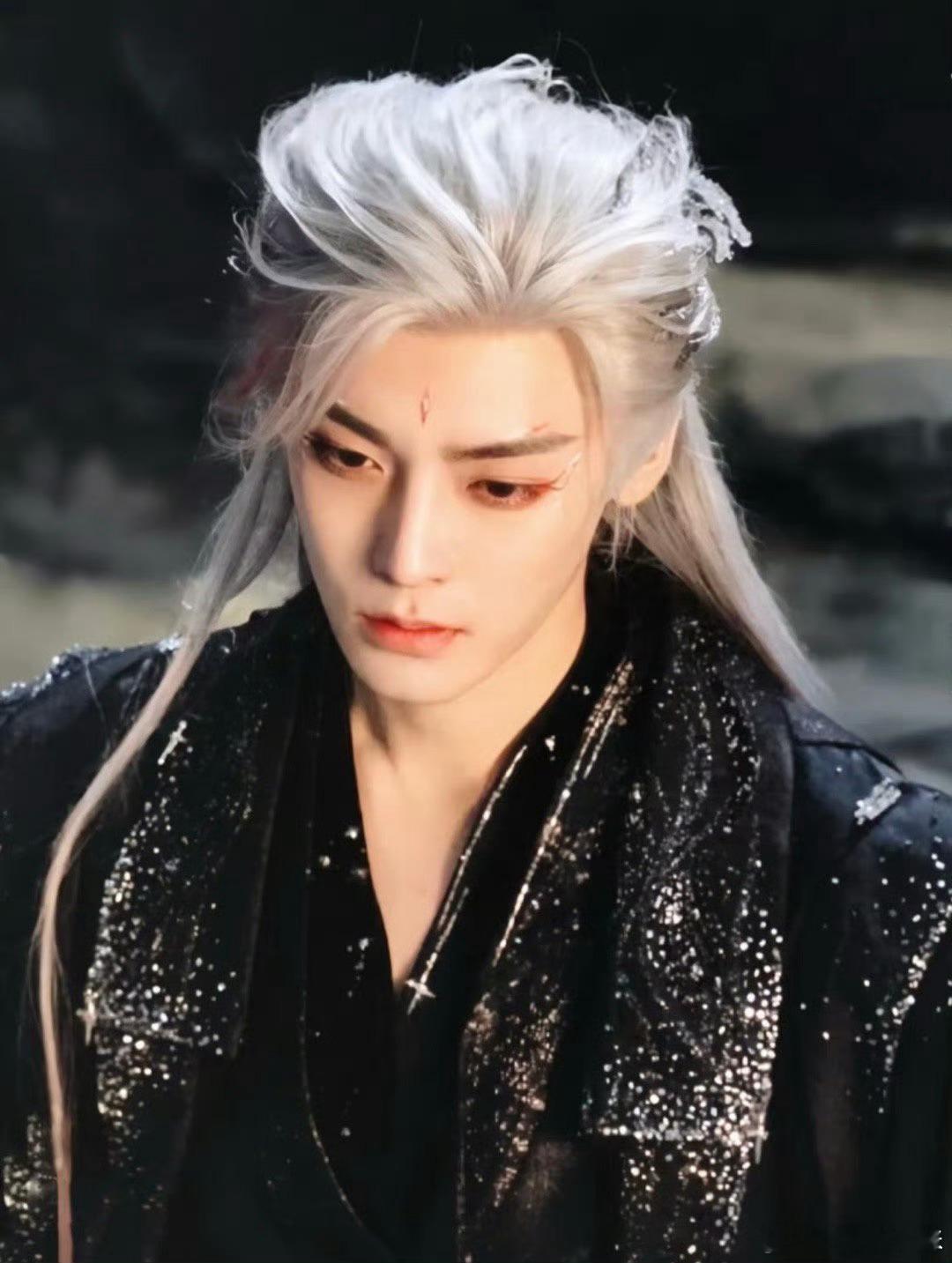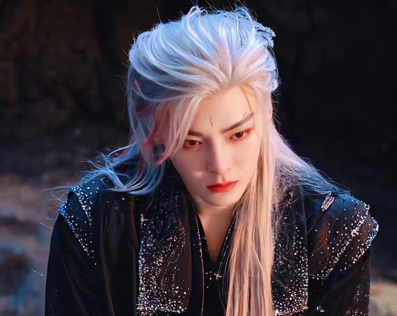 侯明昊白发一字魅银发配黑衣太蛊人!抬眼瞬间眼神勾魂,撕漫男气质拉满,直接在屏幕