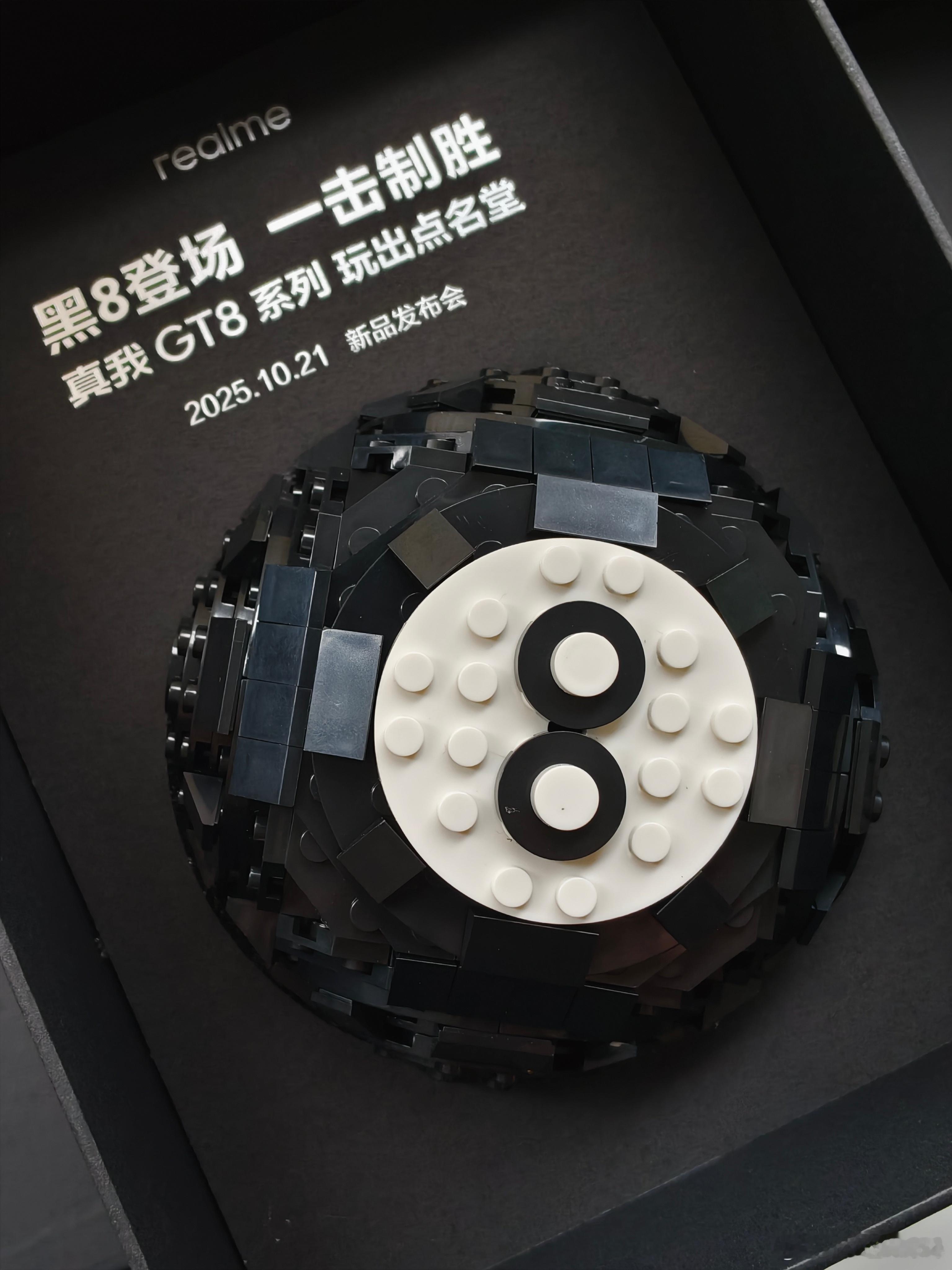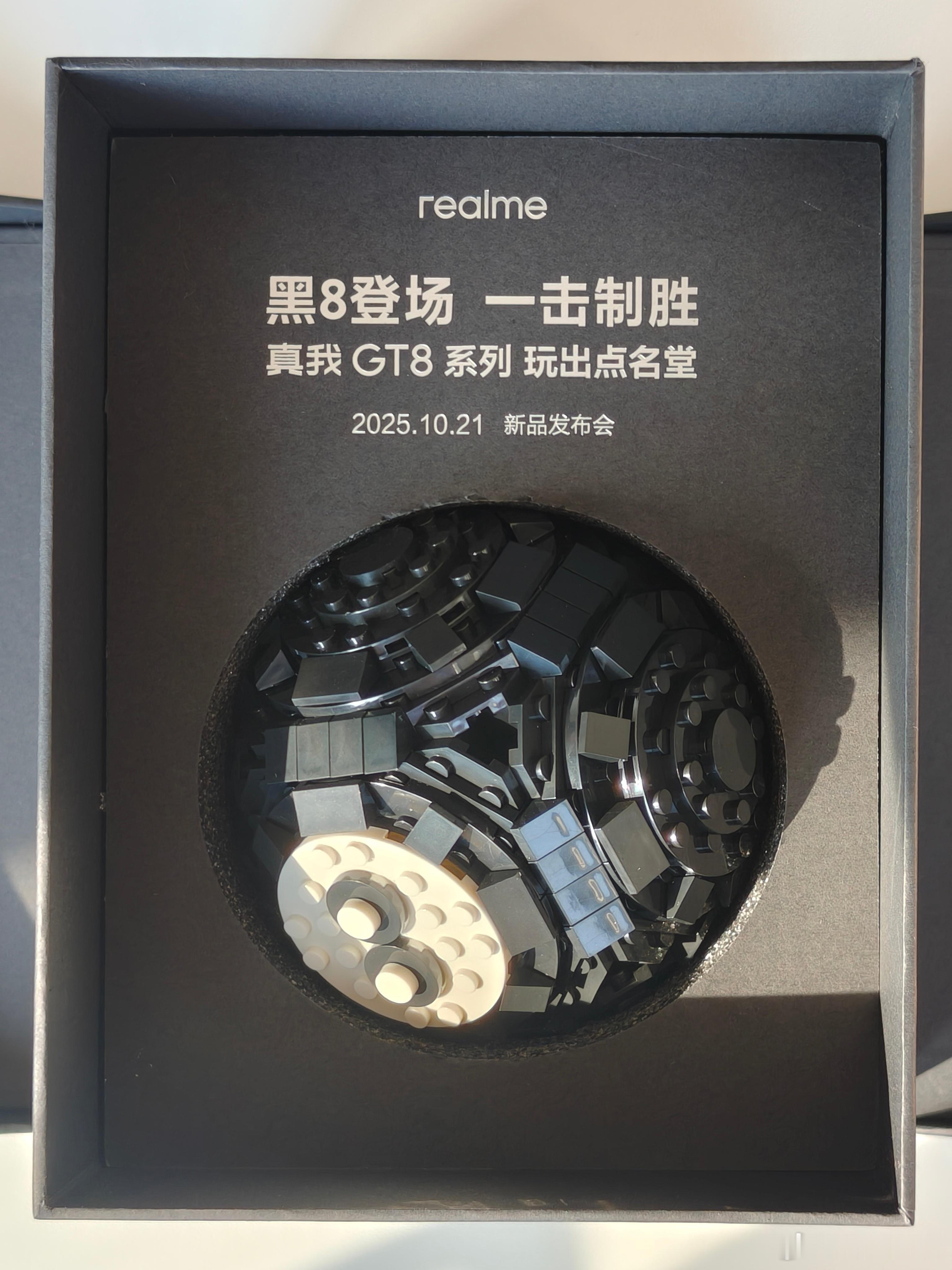 配置都挺强的,我也收到了真我GT8系列发布会的邀请函,是一个可拆、可拼的“黑8”,黑8代表一击制胜[喵喵]。