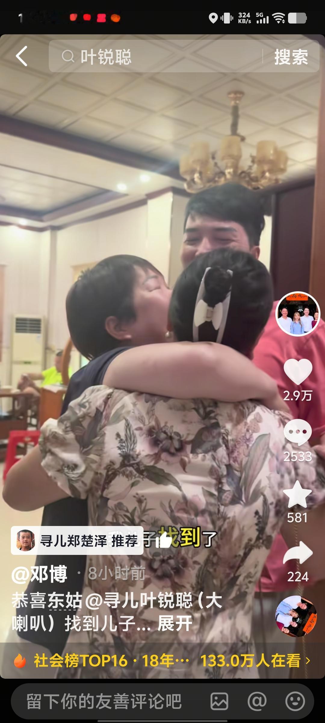 看哭!叶锐聪找到,郑楚泽爸爸喜极而泣,邓惠东视频报喜,网友喊没找到孩子的家长接1